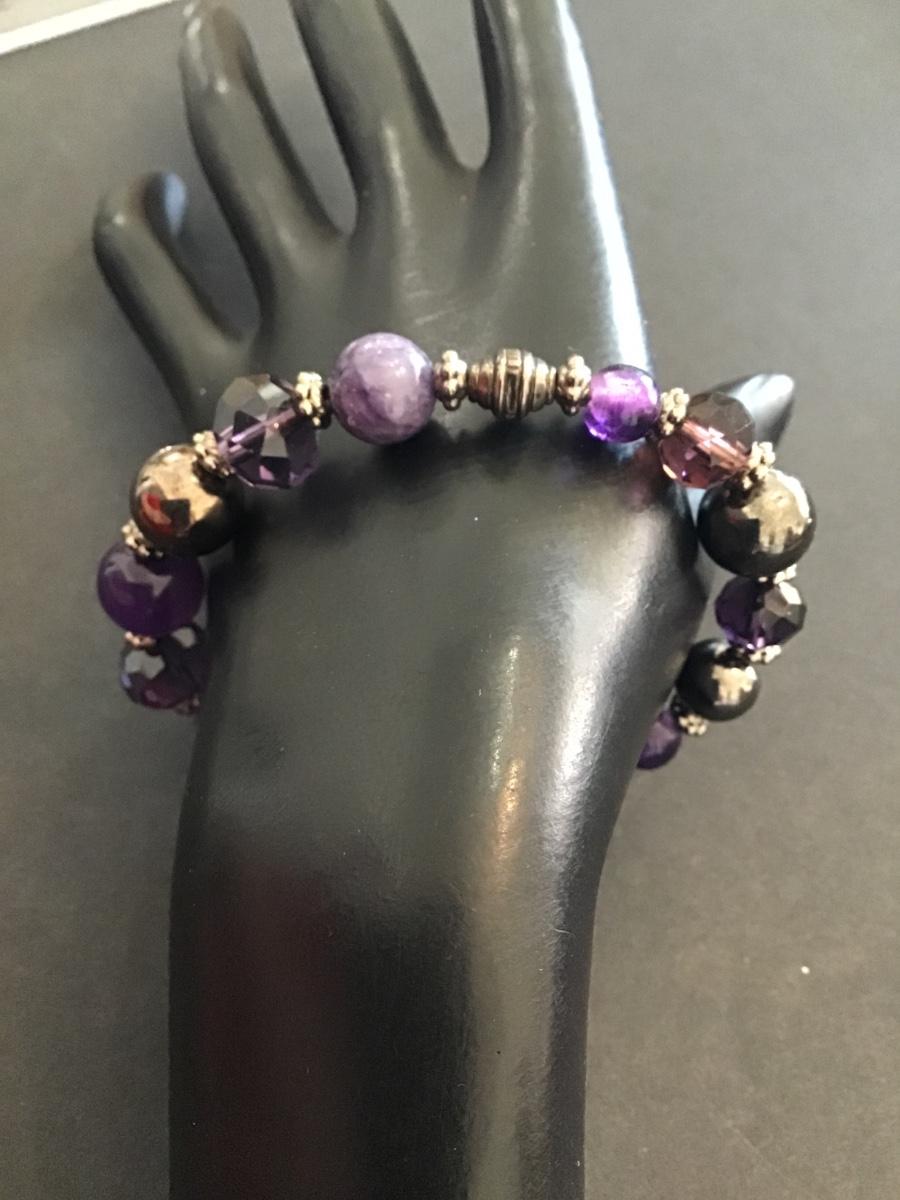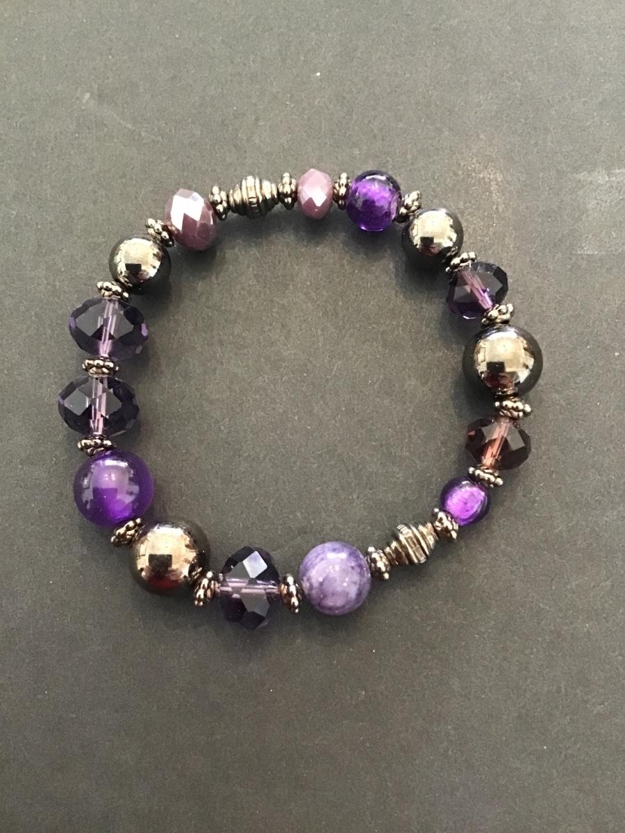 Very nice purple glass beaded and purple polished stone bracelet