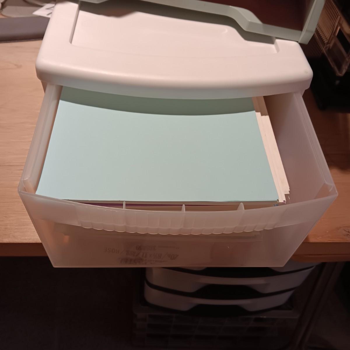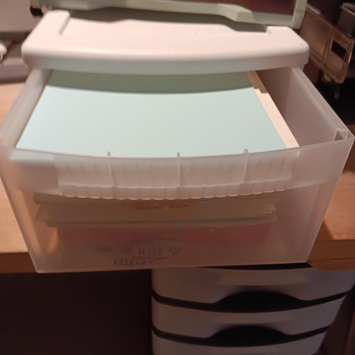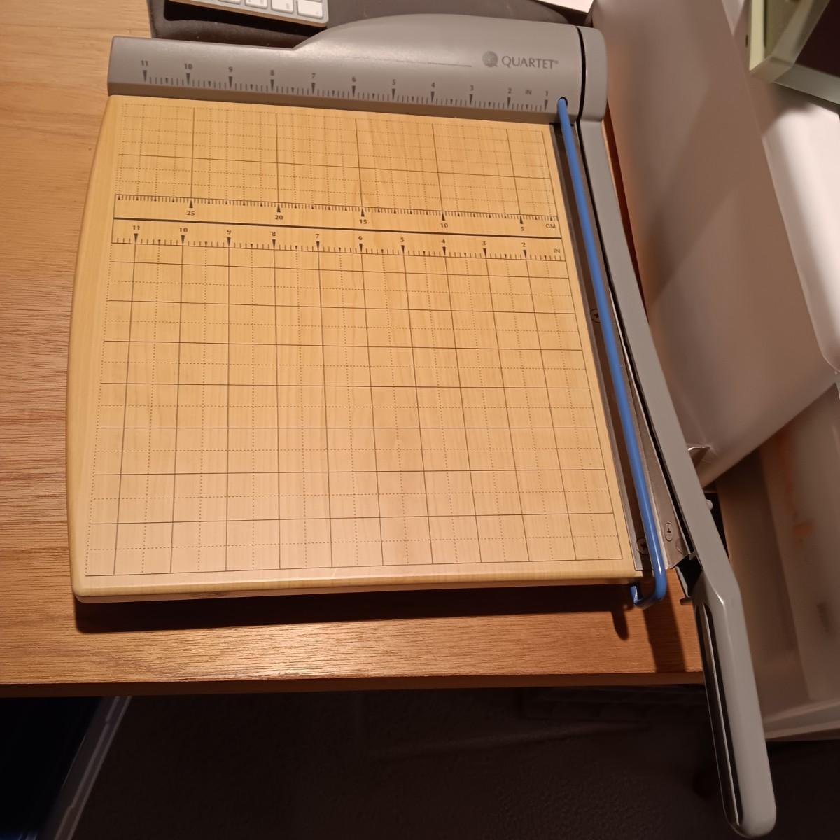 VERY NICE QUARTET PAPER CUTTER, DRAW FULL OF COPY PAPER AND DESK ORGANIZERS