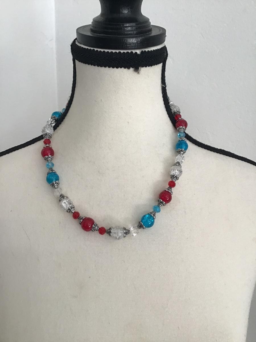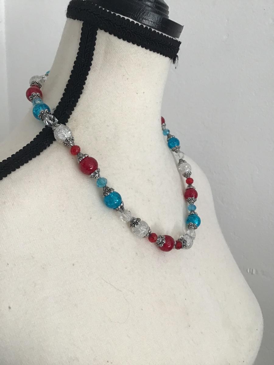 Very nice red white and blue faux beaded necklace