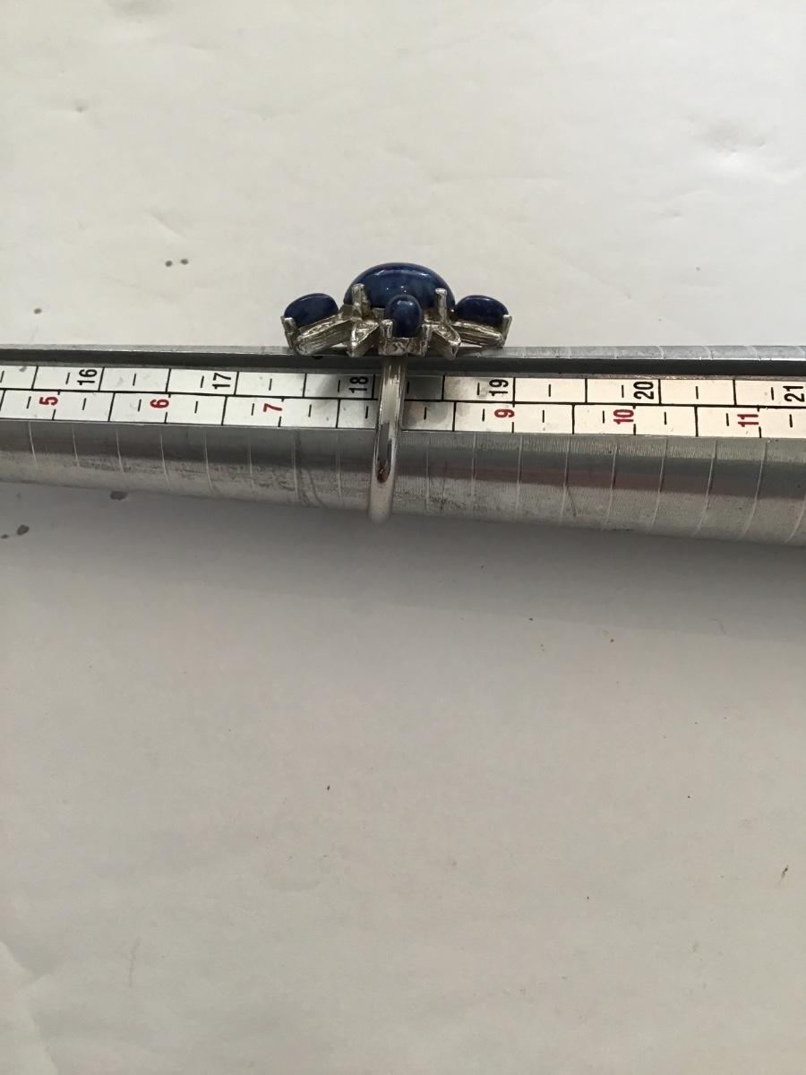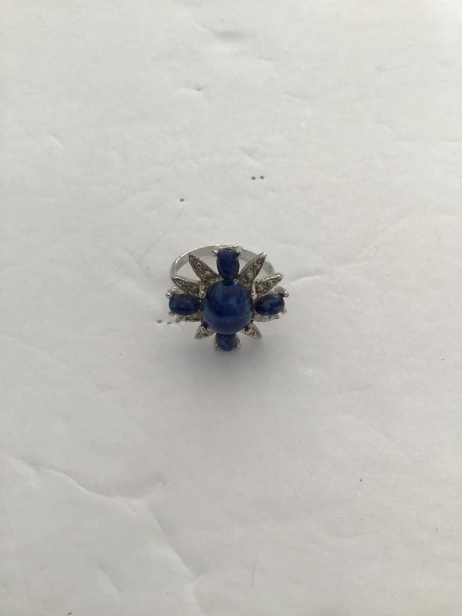 Very nice silver tone, Polished blue stone statement ring please see attached photos