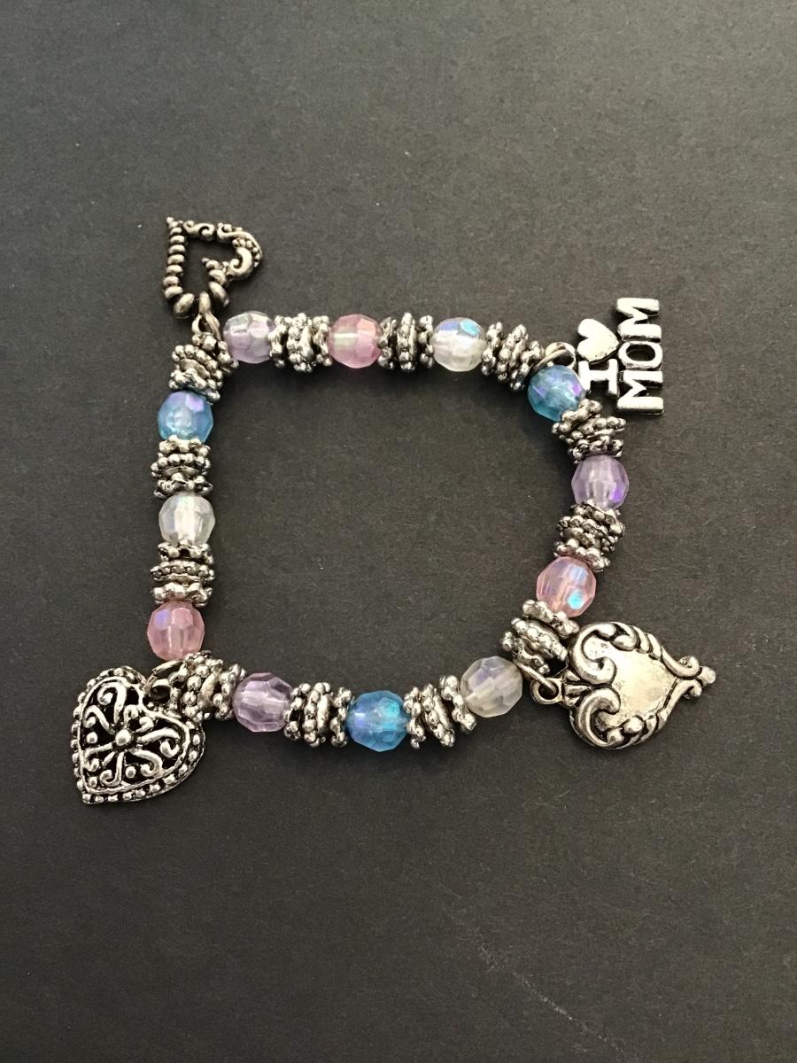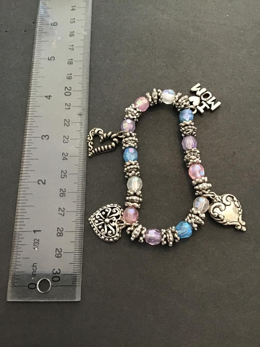 Very nice Silvertone multicolor stretchy charm bracelet please attached photos
