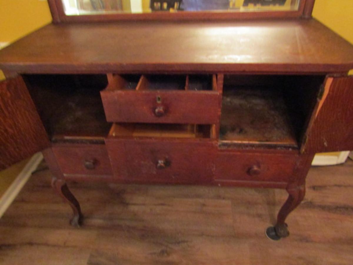 Very Nice Solid Wood Antique Side Board- Claw and Ball Feet- Dovetail Drawers