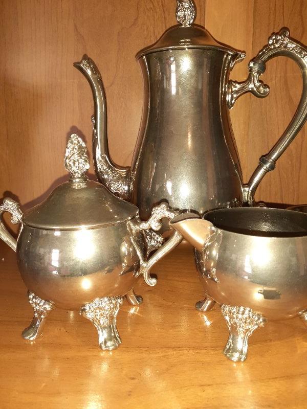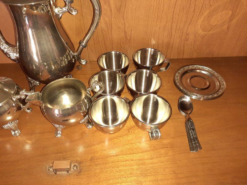 24 PIECE SILVER TEA SERVICE IN EXCELLENT CONDITION, 6 PLATES, SPOONS, AND CUPS. MADE IN GERMANY