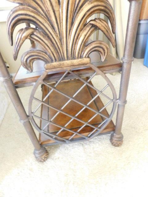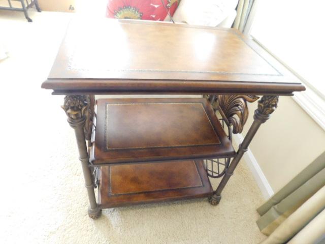 Very Nice Tiered Wood Finish Side Table with Beautiful Hospitality Accents very good condition