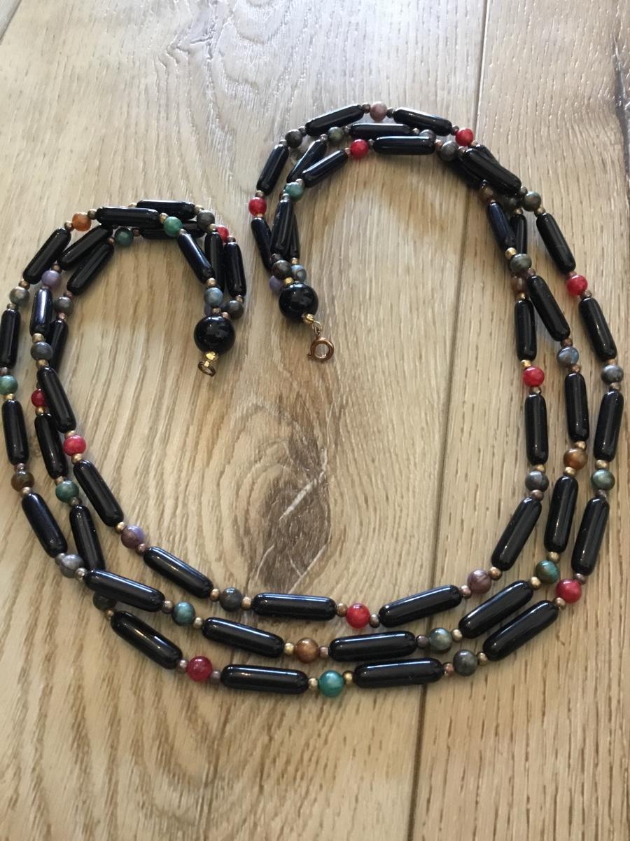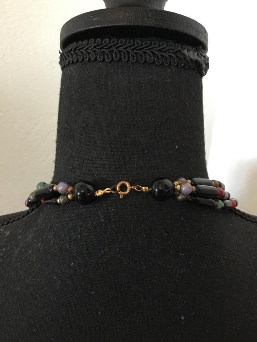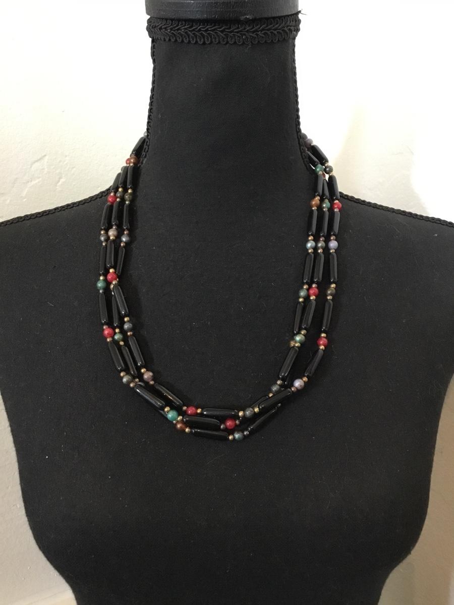 Very nice vintage Black and multicolored bead, multi strand necklace