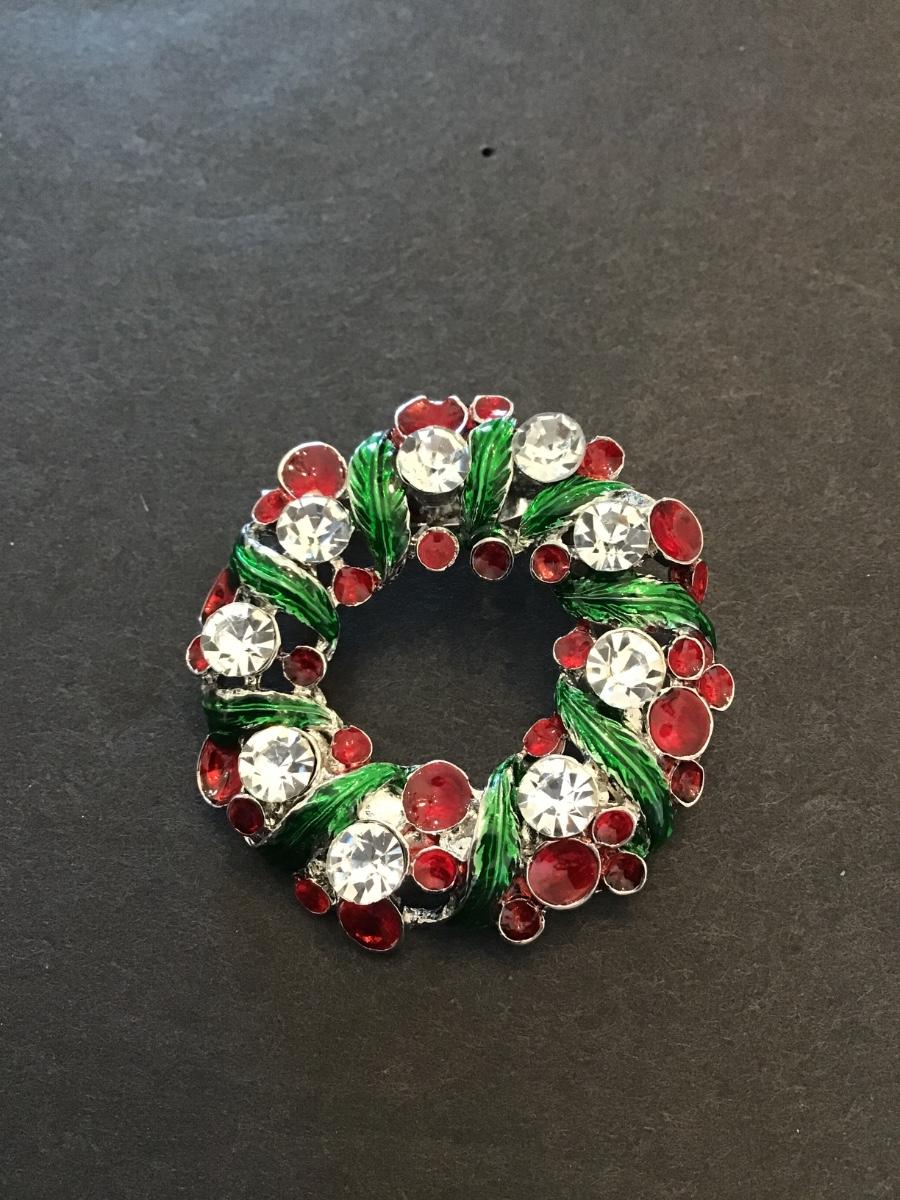 Vintage very nice Christmas wreath brooch. Please see attached photos.