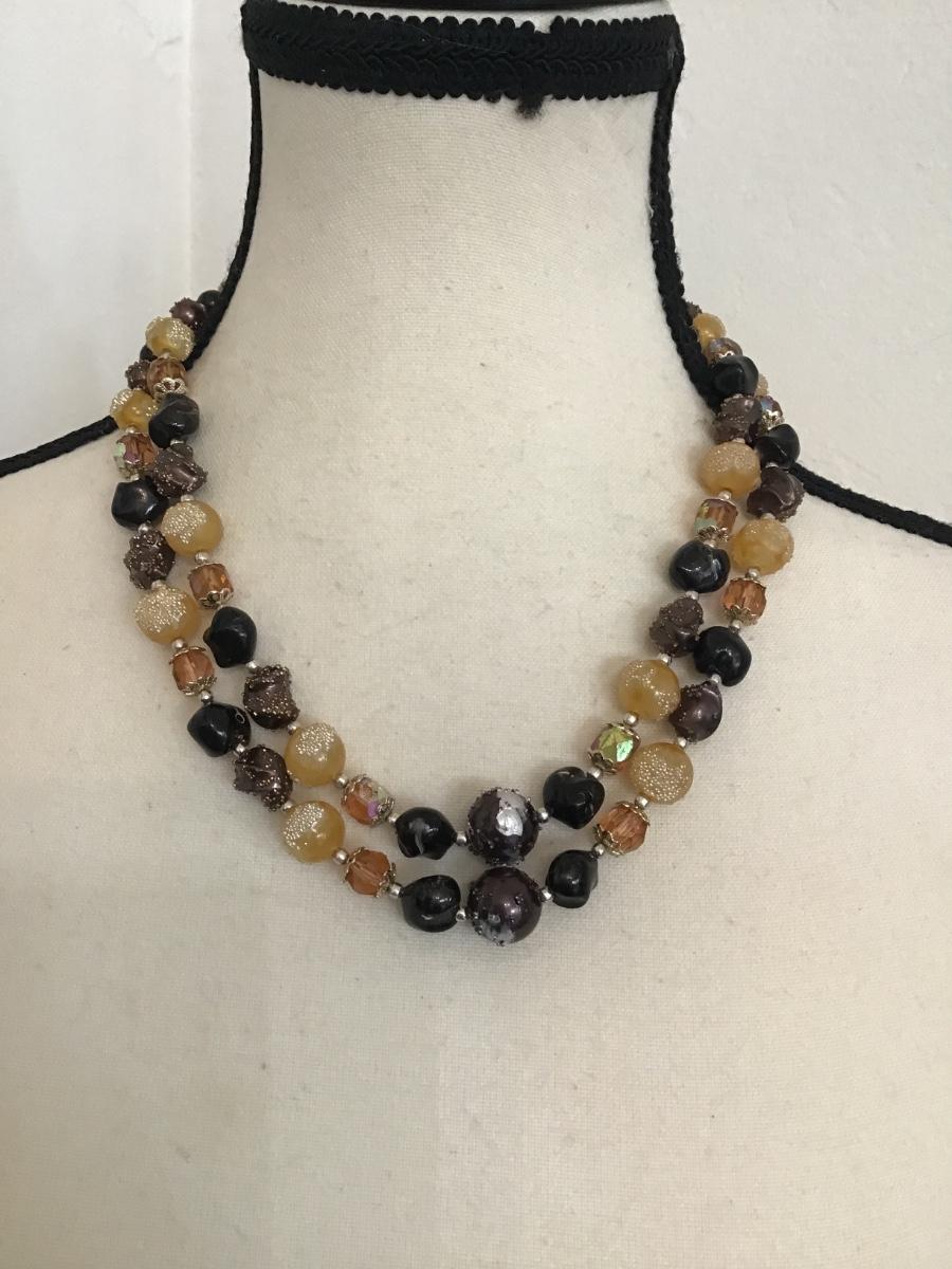 Very nice Vintage costume jewelry, necklace, with plastic and glass beads multicolor
