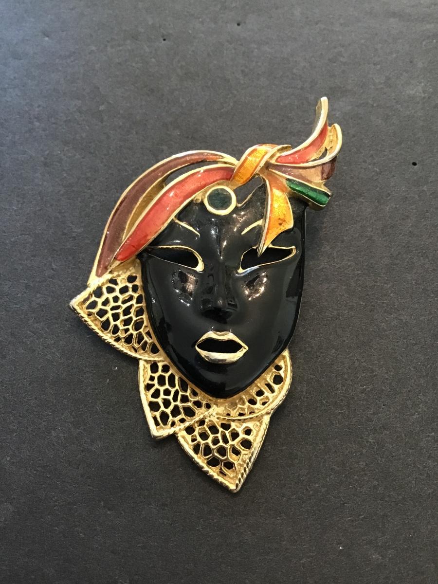 Very nice vintage mask, brooch