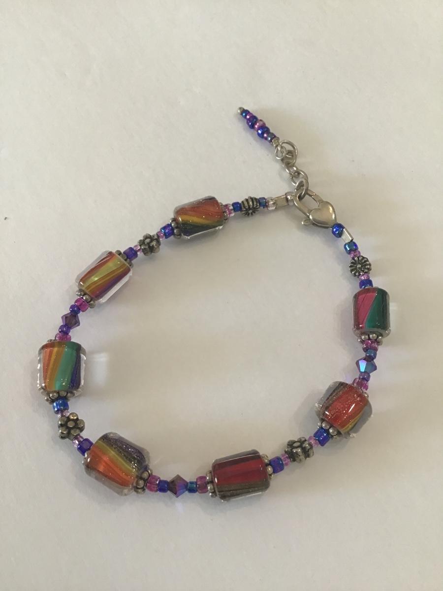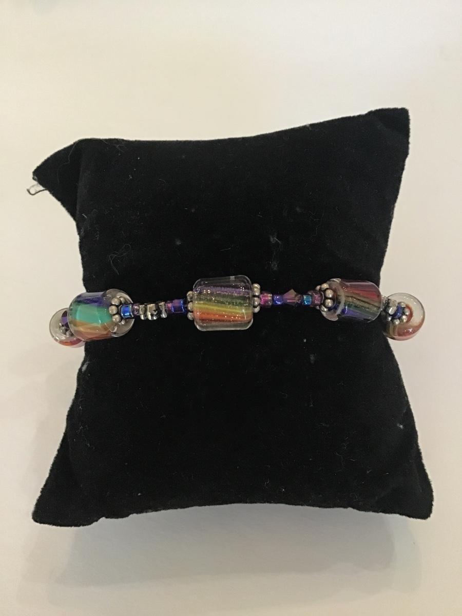 Very nice vintage silver tone art glass bead bracelet