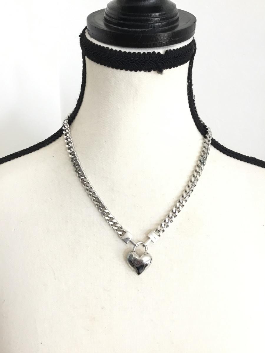 Very nice vintage, silver toned, chain-link heart necklace. Very nice quality.