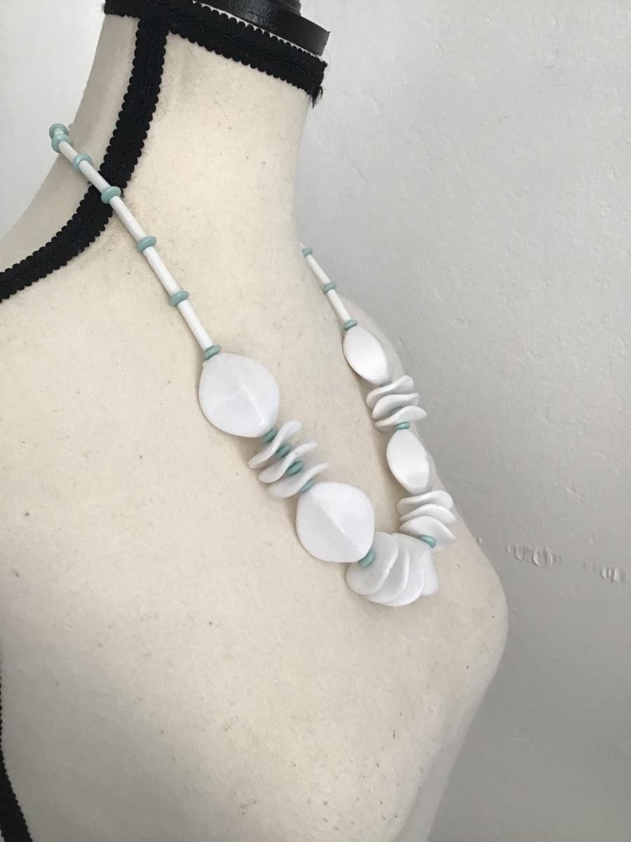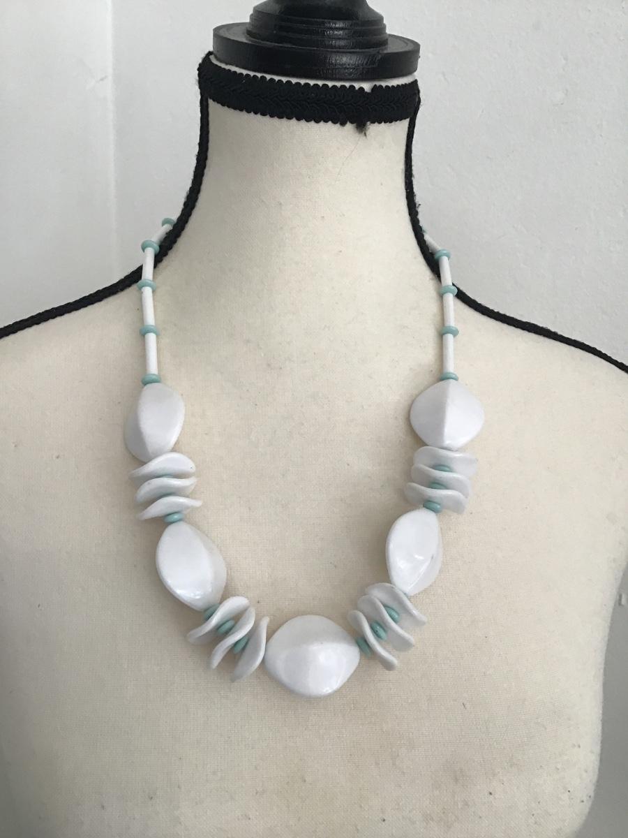 Very nice vintage white faux beaded necklace. Please see attached photos.