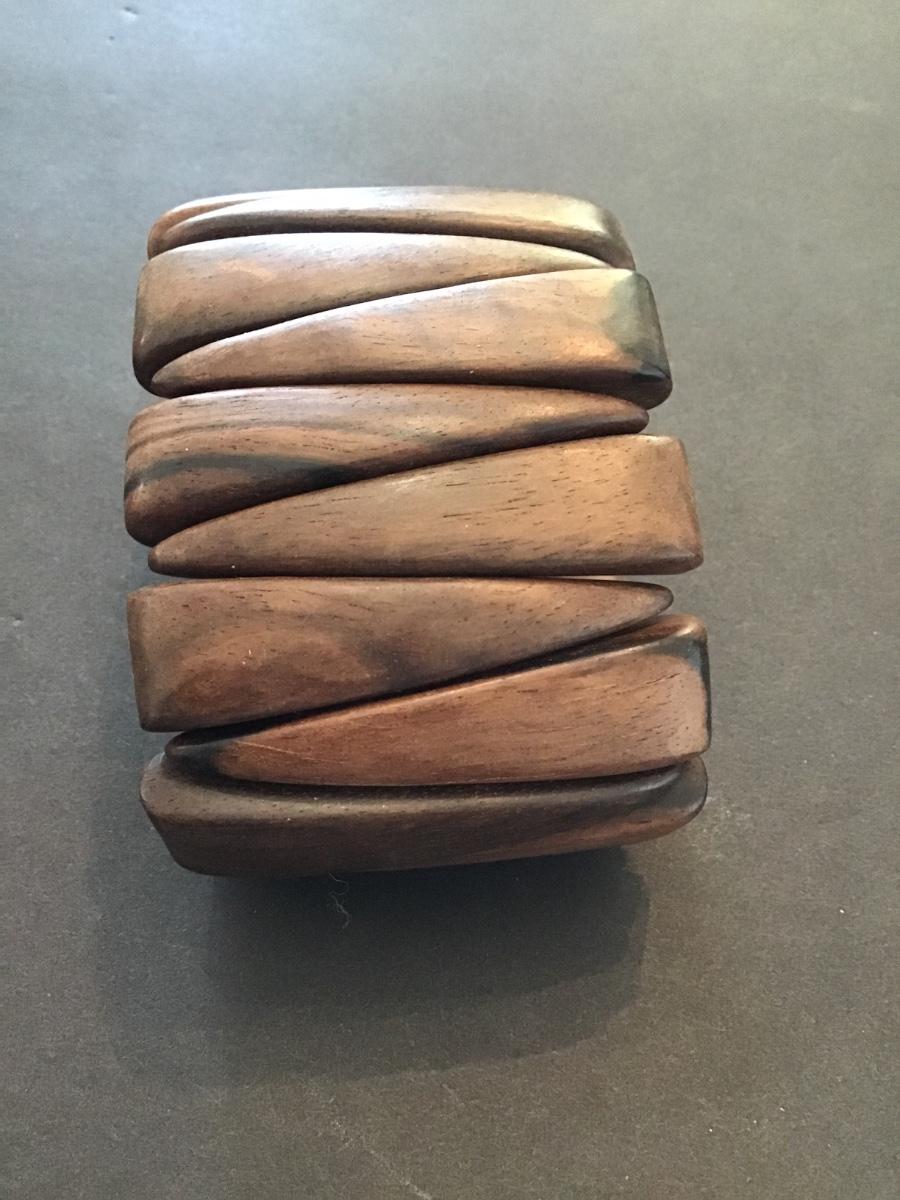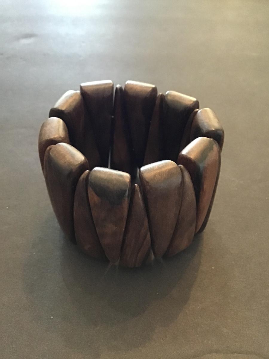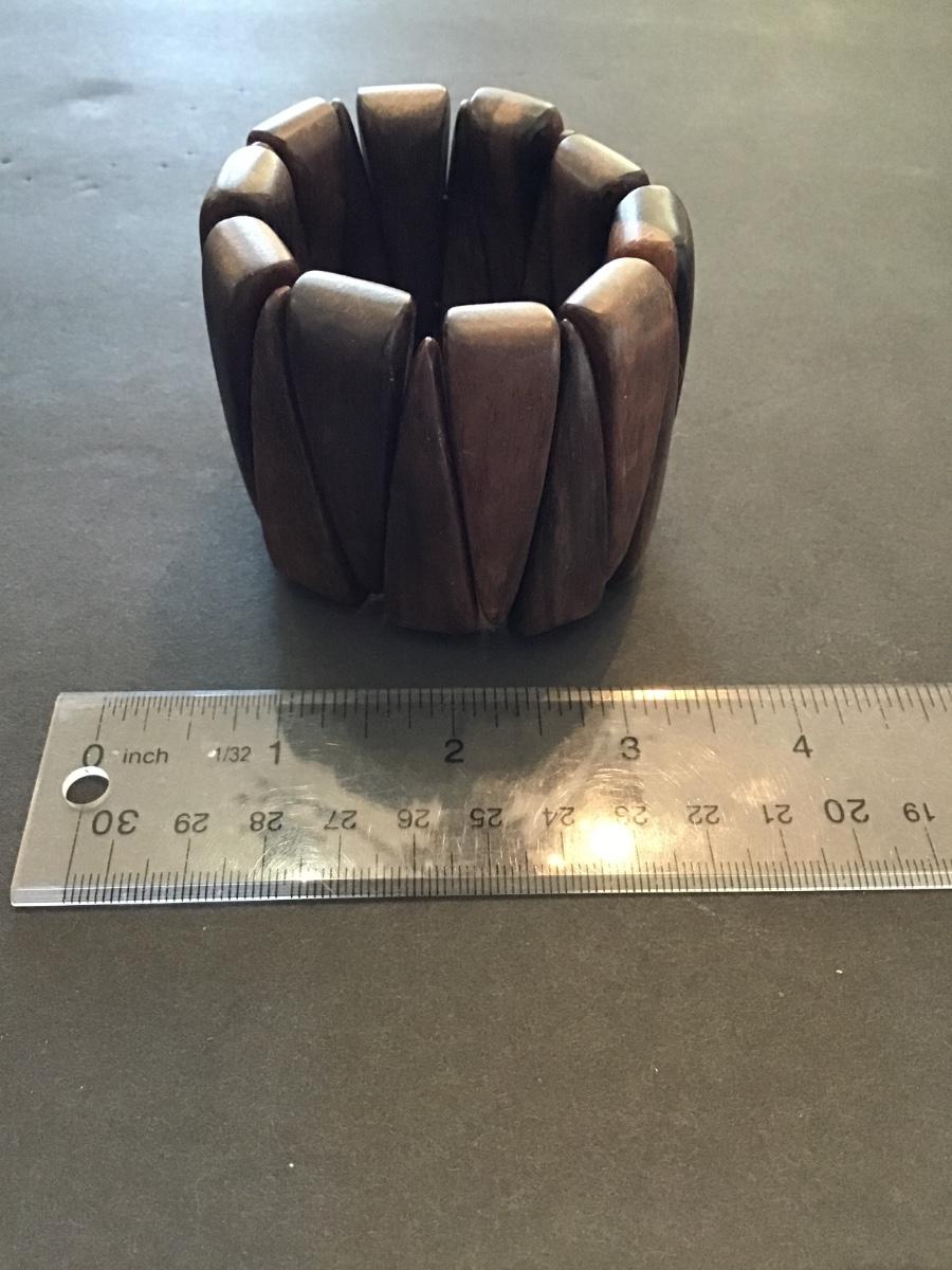 Very nice wood carved stretchy bracelet. No wear please see attached photos.