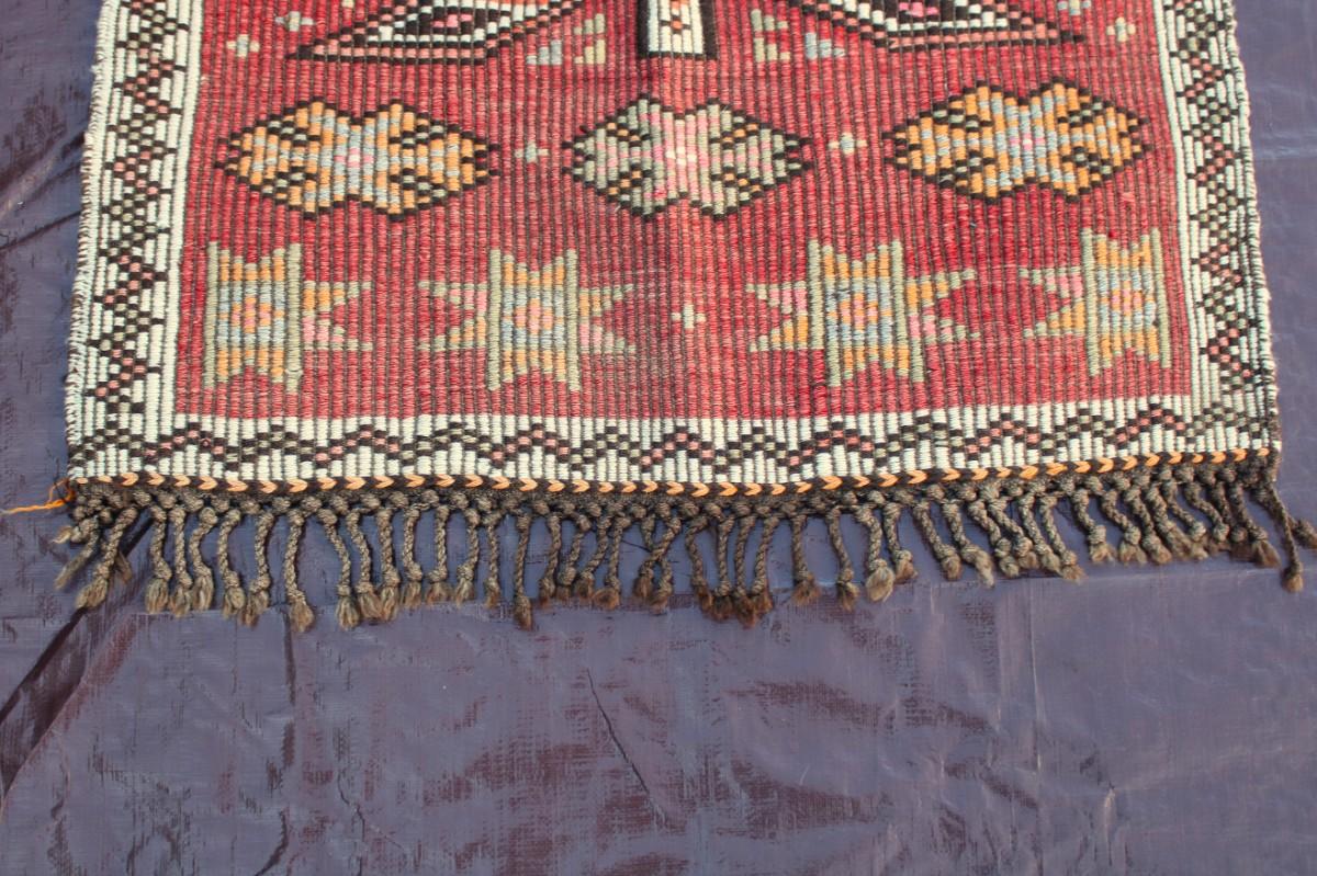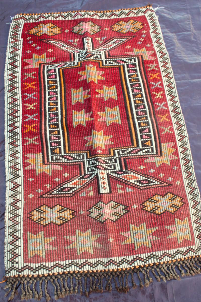 Very old hand made Turkish rug.  Can be hung as a tapestry.