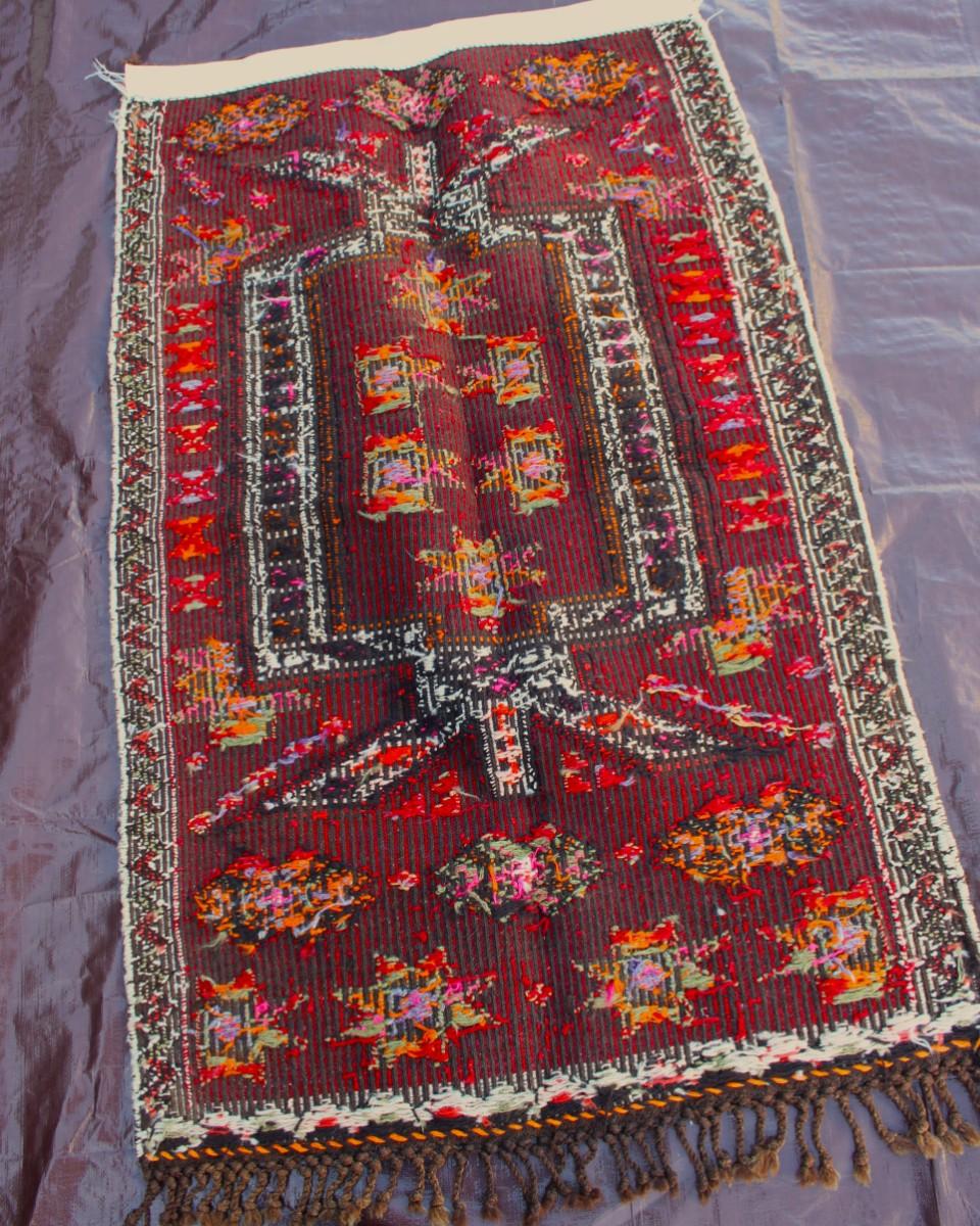 Very old hand made Turkish rug. Can be hung as a tapestry.