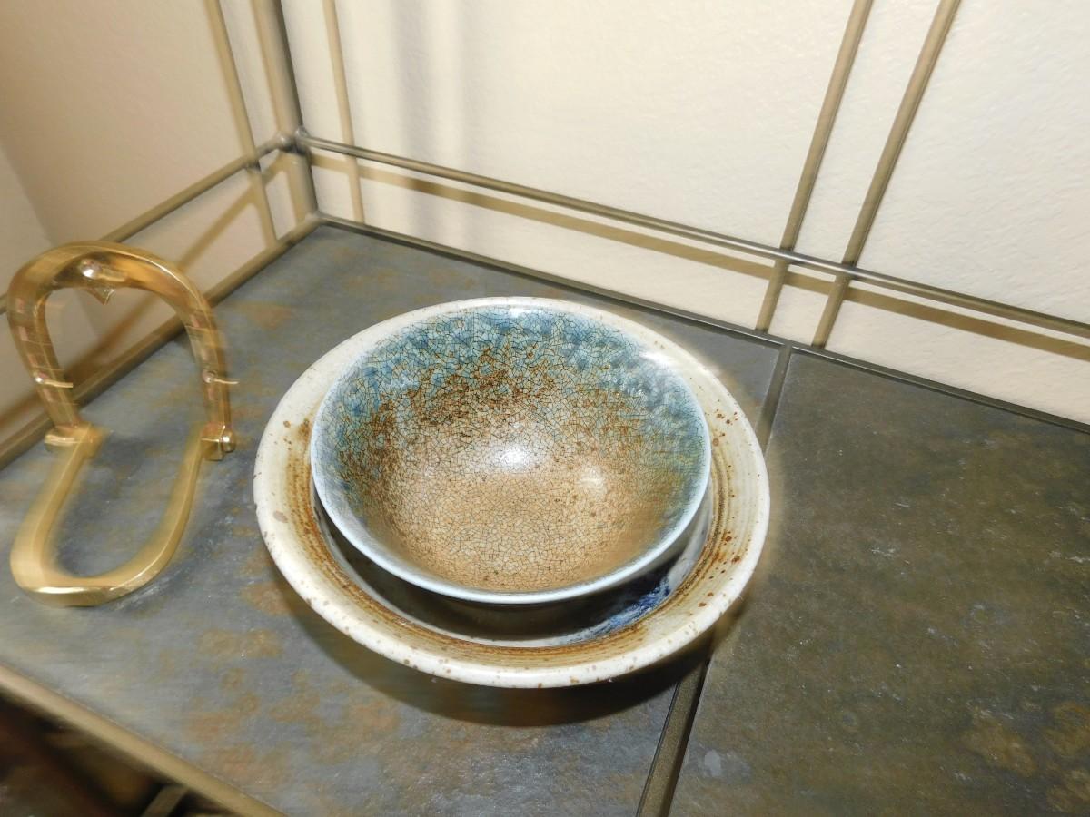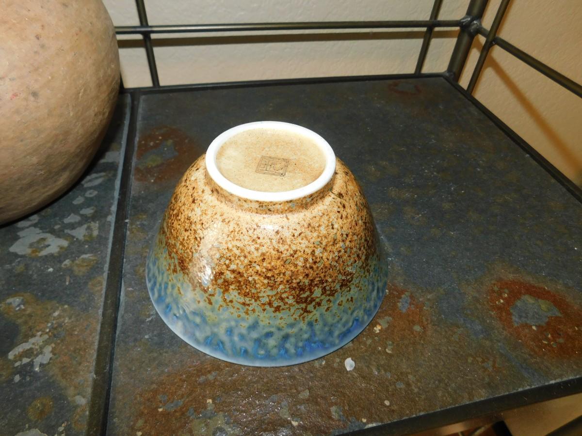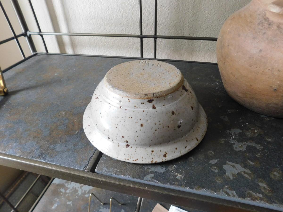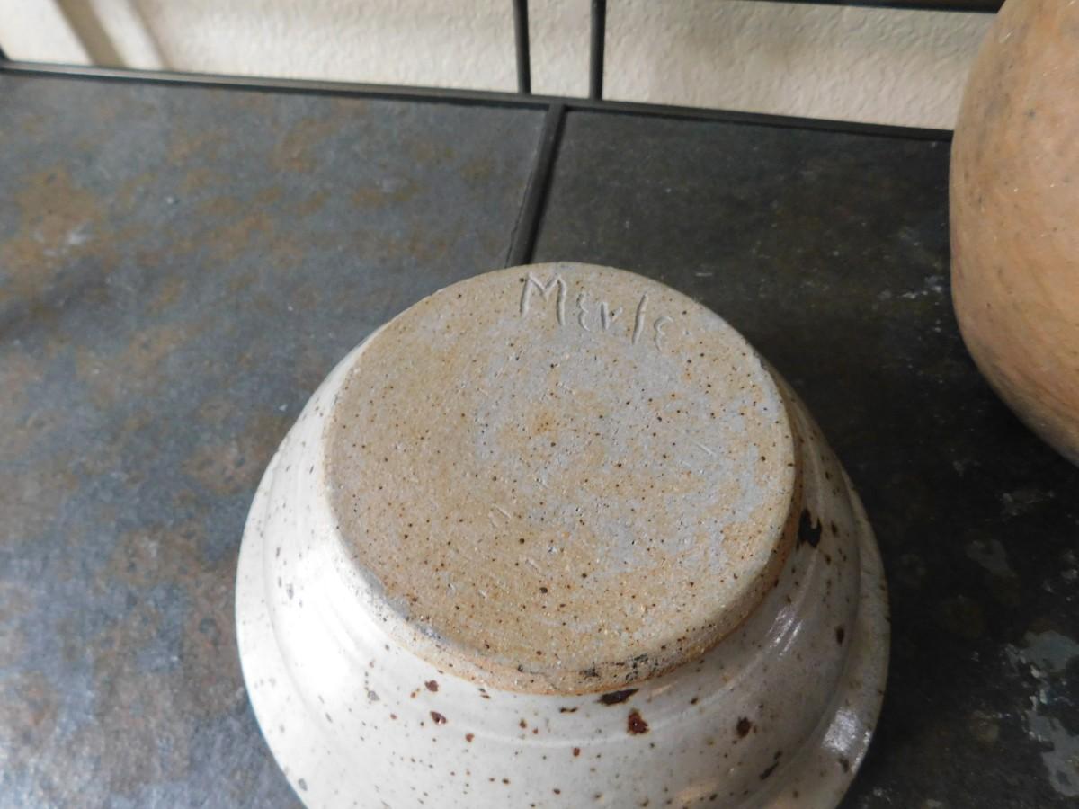 THE LARGE OLD CLAY POT DOES HAVE A COUPLE CHIPS AND CRACK LINES IT MEASURES APPROX 5" AT THE OPENING 8" ACROSS THE CENTER AND 6-1/2" TALL. THE BOWLS ARE 5" AND 7"