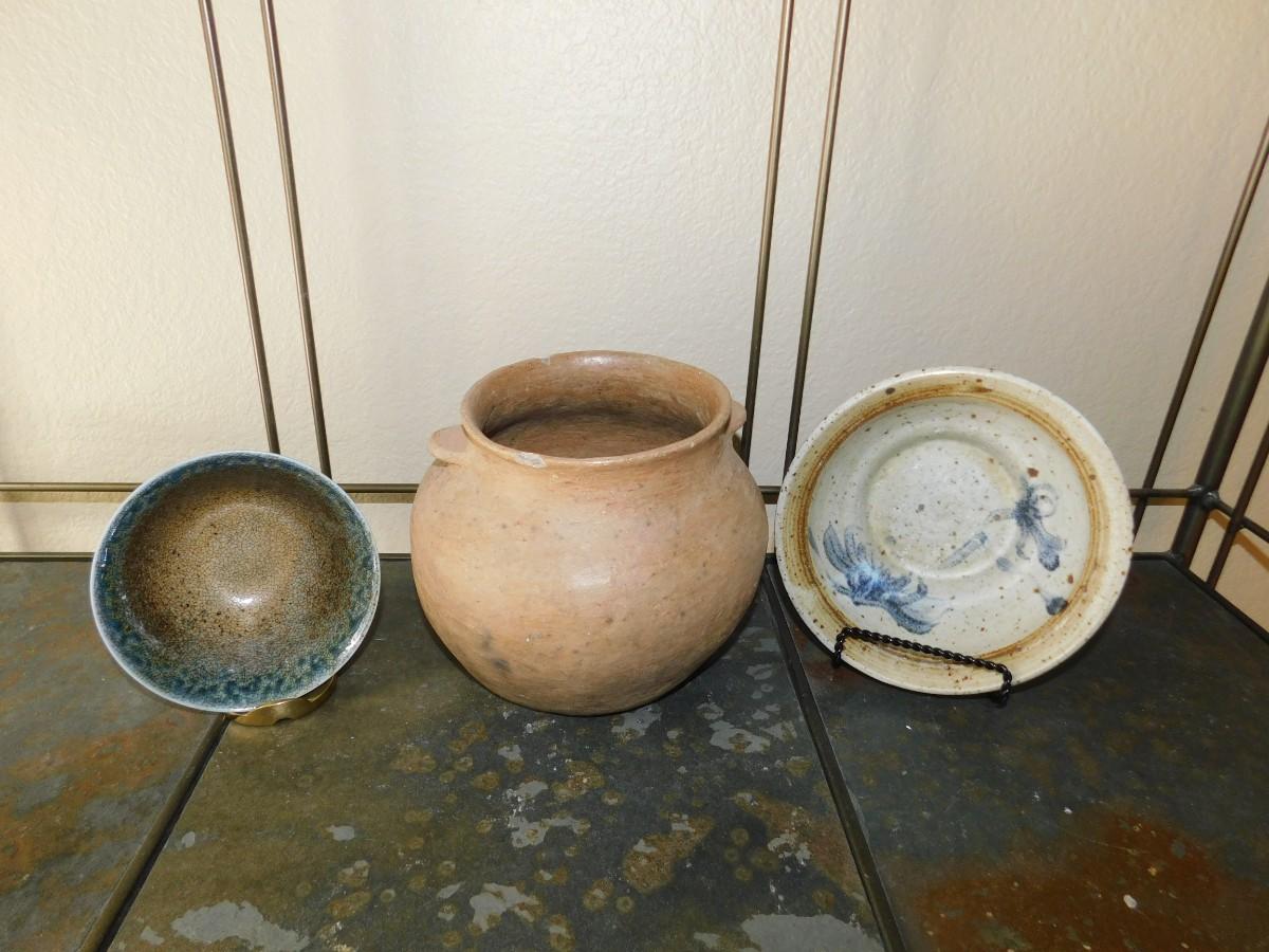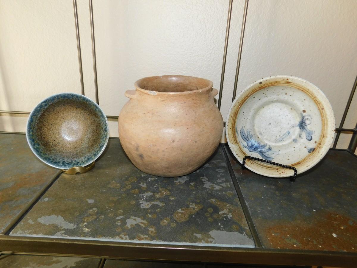 VERY OLD INDIAN POT, SIGNED DISH AND NEAT LITTLE BOWL