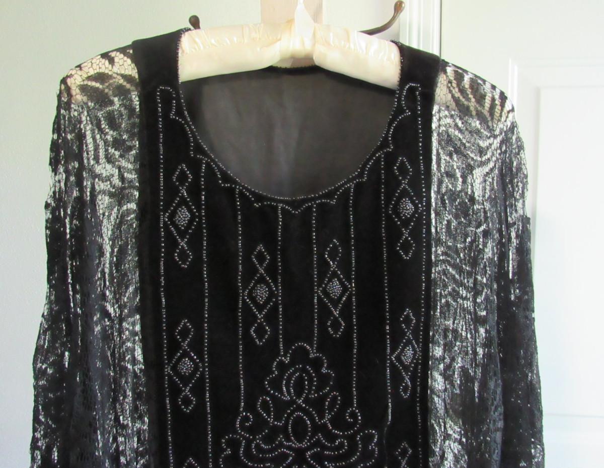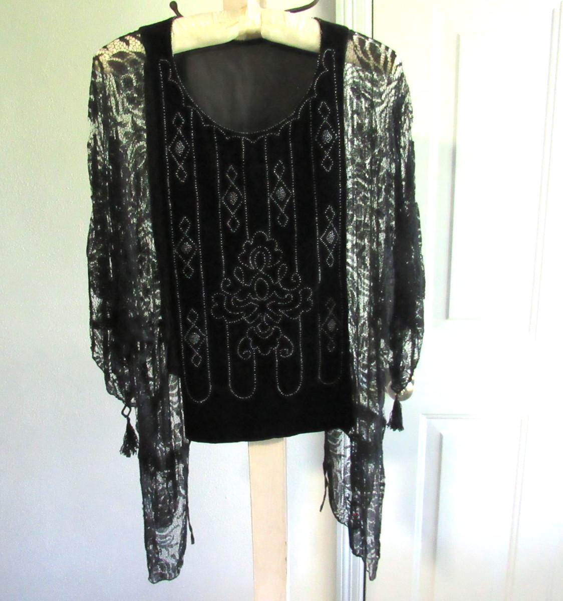Lot 76: Very Pretty Fancy Beaded and Lace on Velvet Antique Ladies Top, Flapper Style