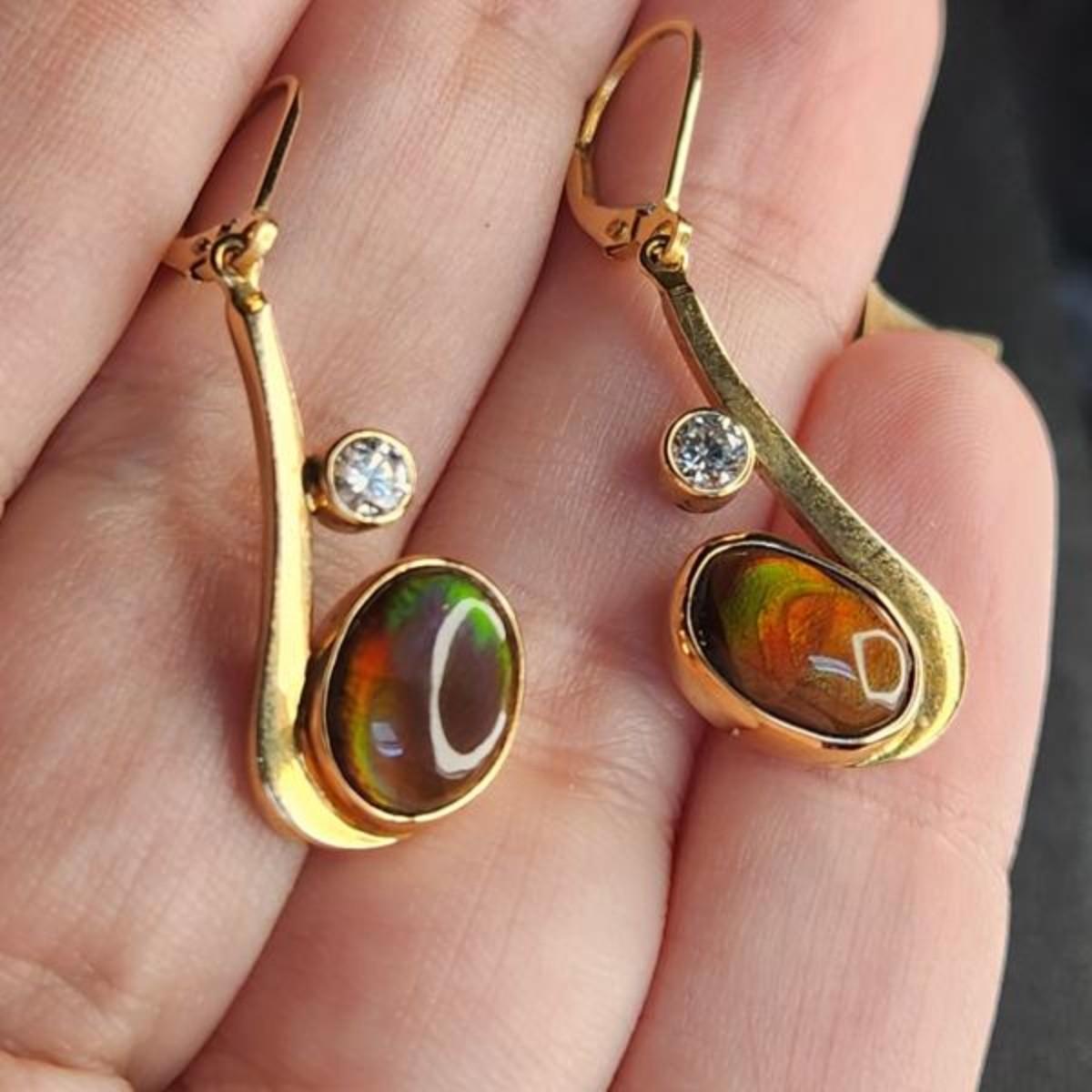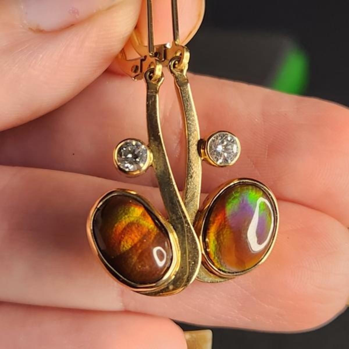 Very Rare 14k Gold Mexican Fire Agate Diamond Earrings