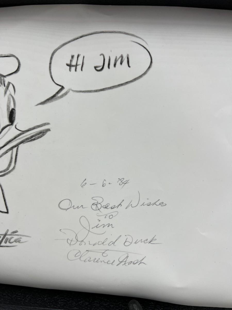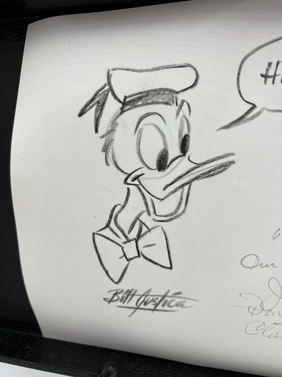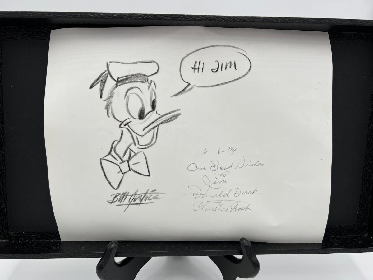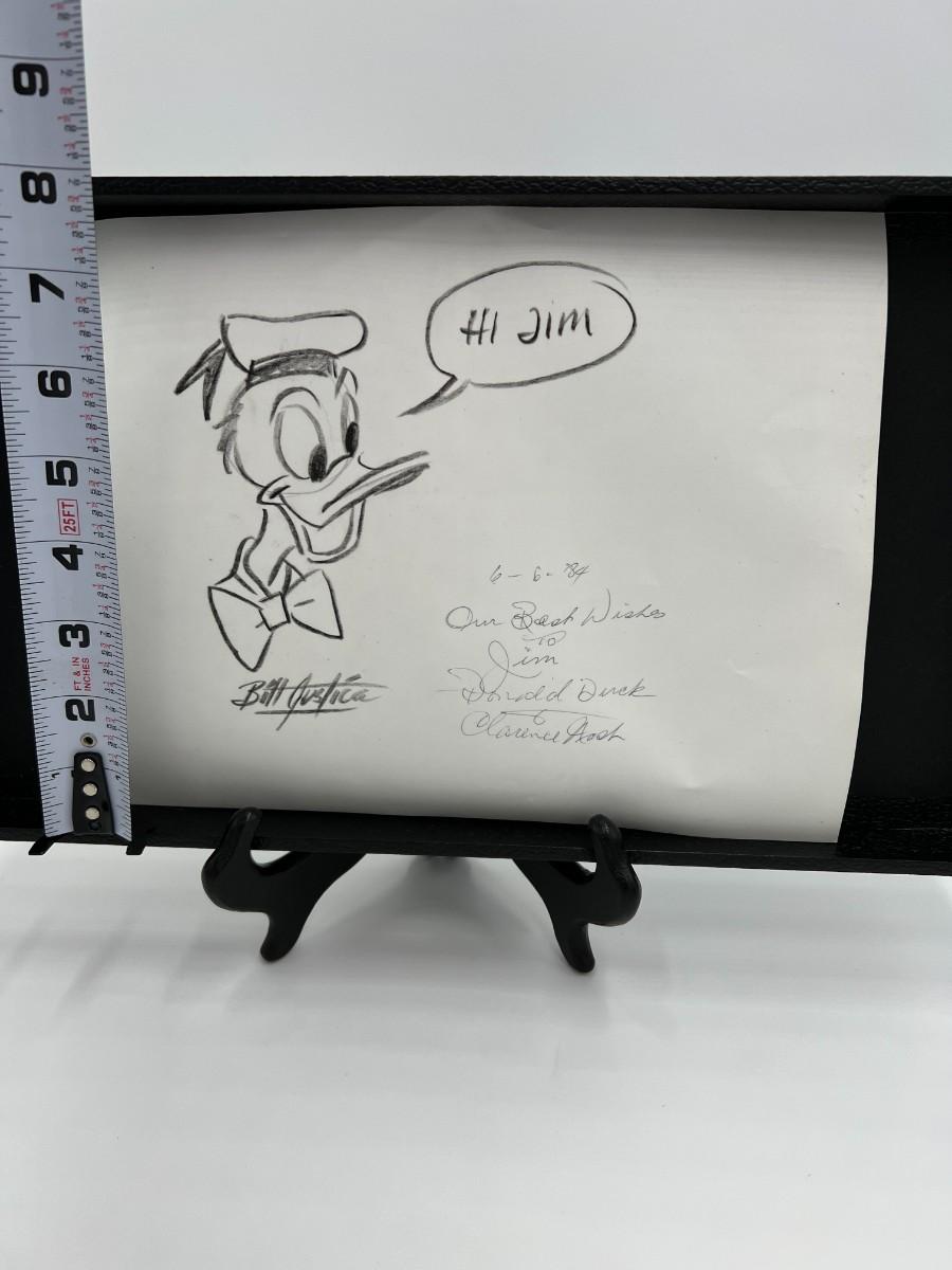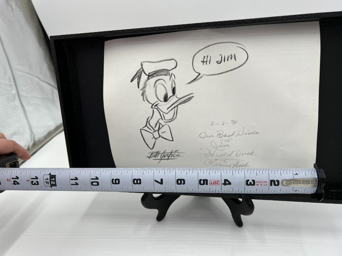Very Rare Disney Donald Duck Animated Stills and Drawing Autographed by Bill Justice and Clarence Nash