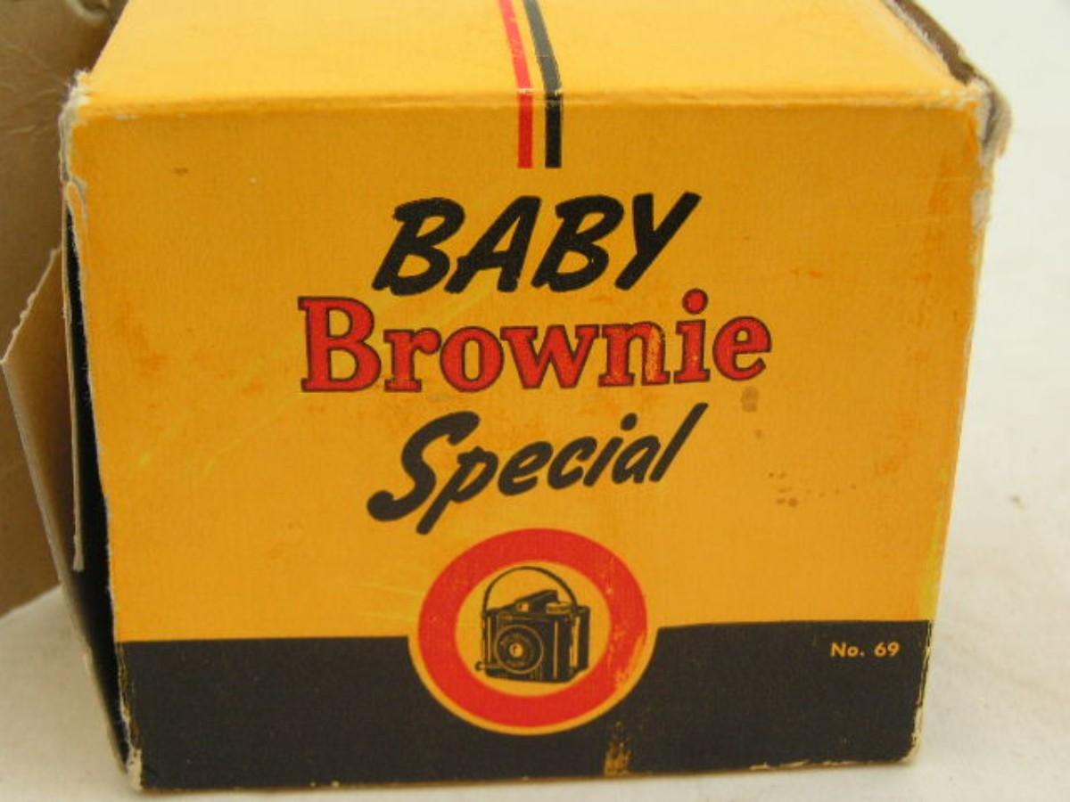 Kodak Baby Brownie Special #69. What a prize! VERY rare hard to find in this condition !!! This one is in MINT- condition and still in the original box WITH the owners manual !!! The box is a little rough but it’s all there. This is a “MUST HAVE!” for your collection!