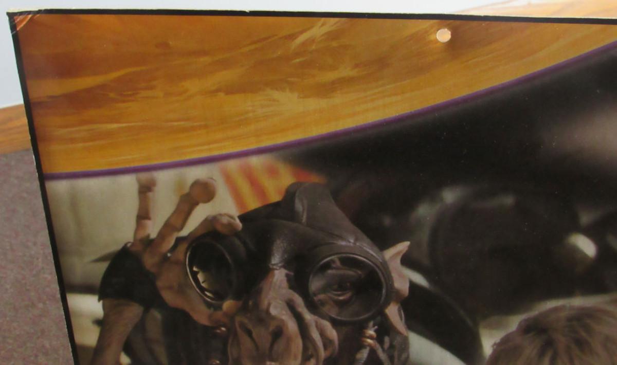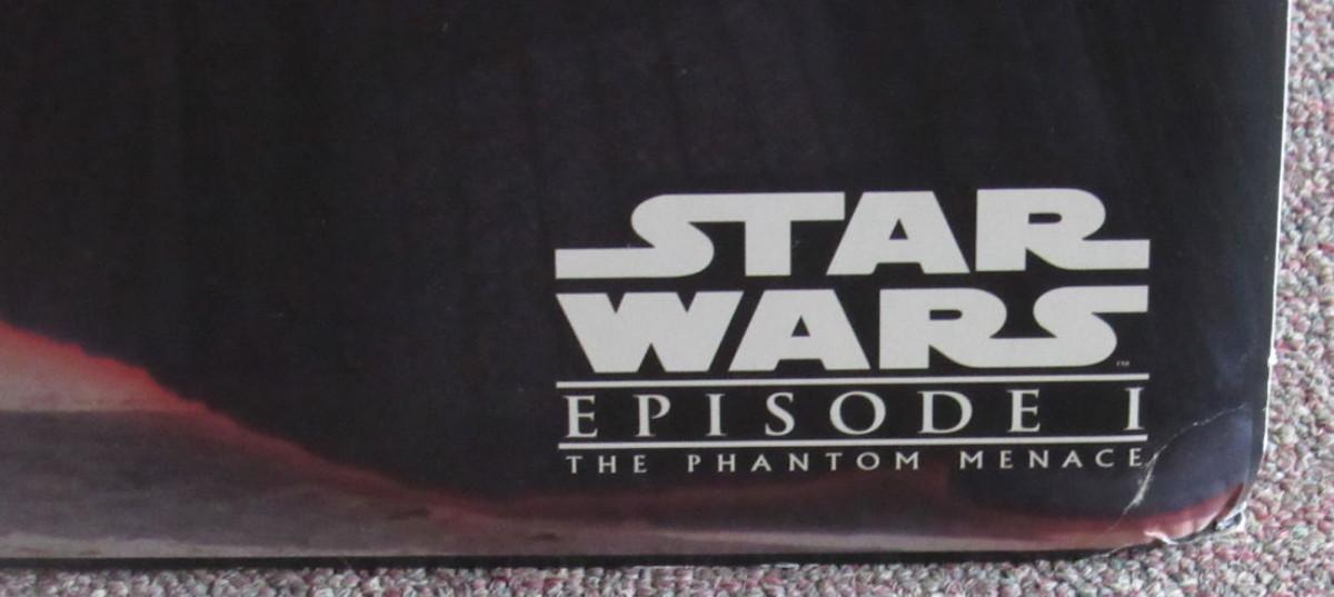 Very Rare Store Point of Sale Wall Display. Taken right off the wall at Kmart in Fond du Lac, WI 23 years ago and given to our consignor. It is a large double length poster on both sides with foam board in between. It measures about 22" x 68" when flat. The are hanging holes on the top and bottom edges throughout. It is in overall good condition but the corners have bends and are a little dog eared, and the top and bottom center seam has minor tear but is totally intact. It is a little curved from hanging on the wall. See all photos and email with any questions. One image on one side has some white spots, not sure what that is and did not want to do anything with it, do not want to damage it. You can see the spots on the close up photos of Darth Maul, only on one part of one side, the other side is good. We did multiple internet searches to try to find something similar. We searched many online sites for current and sold items and cannot find this exact one anywhere. We did find other store wall displays that sold for $699.00 and one for $1000.00. These are very hard to come by because the stores either sent them back to distributor or they tossed them out. Shipping is available, local quotes were very high just FYI. Anywhere from $125 - $369 depending on the carrier, destination, and insurance. It does fold in half if you want it shipped that way and may be cheaper, we don't know. Email for more details.