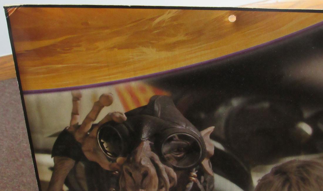 Rare Store Point of Sale Wall Display. Taken right off the wall at Kmart in Fond du Lac, WI 22 years ago and given to our consignor. It is a double length poster on both sides with foam board in between. It measures about 22" x 68" when flat. The are hanging holes on the top and bottom edges throughout. It is in overall good condition but the corners have bends are are dog eared, and the top and bottom center seam has minor separation but is totally intact. It is a little curved from hanging on the wall. See all photos and email with any questions. One image on one side has some white spots, not sure what that is and did not want to do anything with it, do not want to damage it. You can see the spots on the close up photos of Darth Maul, only on one part of one side, the other side is good. We did multiple internet searches to try to find something similar. We searched many online sites for current and sold items and cannot find this exact one anywhere. We did find other store wall displays that sold for $699.00 and one for $1000.00. These are very hard to come by because the stores either sent them back to distributor or they tossed them out. Shipping may be available if you make arrangements with your shipping carrier. Local quotes were very high just FYI. Anywhere from $125 - $369 depending on the carrier, destination, and insurance. It does fold in half if you want it shipped that way and may be cheaper, we don't know. Email for more details.