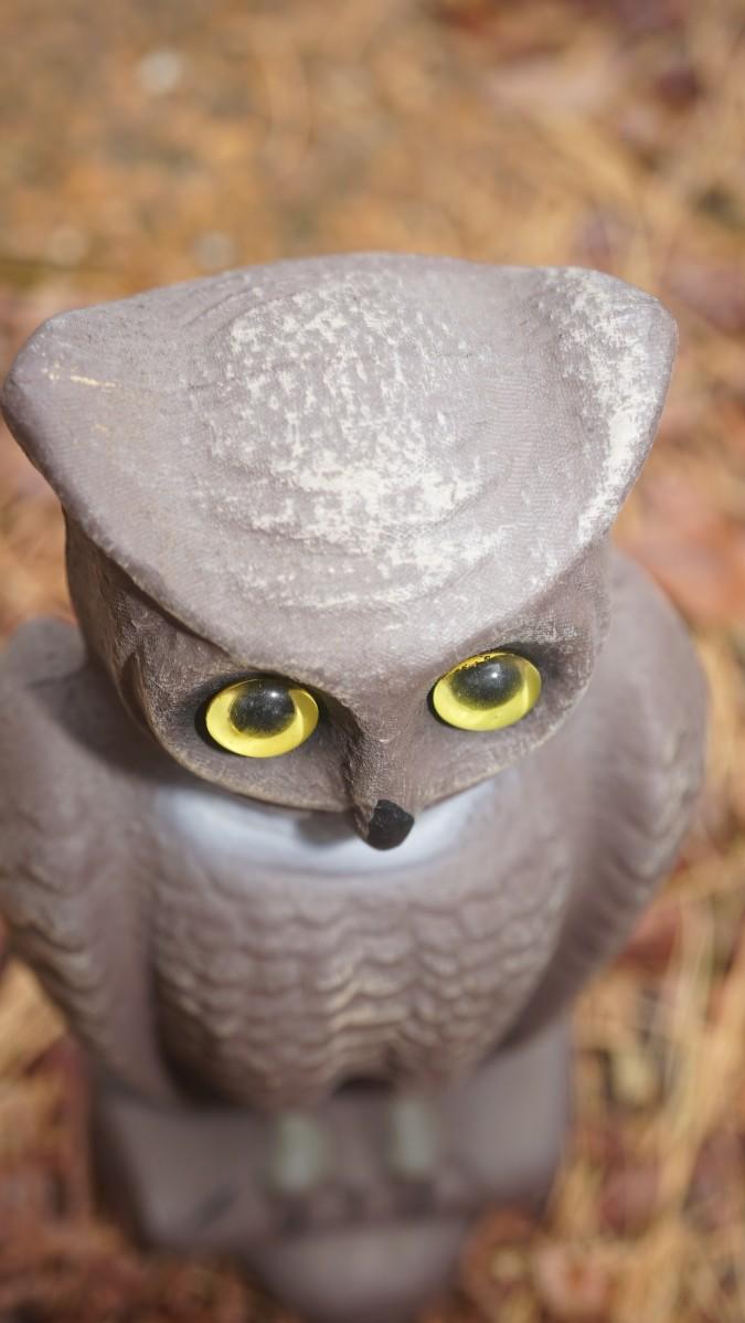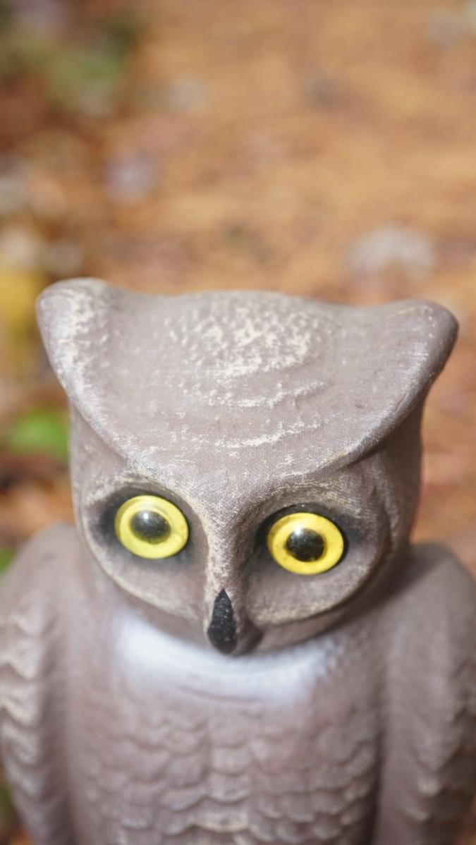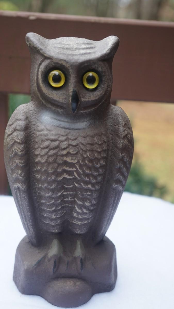 VERY RARE VINTAGE PAPER MACHE OWL DECOY- DOUBLE SIDED FACE WITH GLASS EYES. 12"
