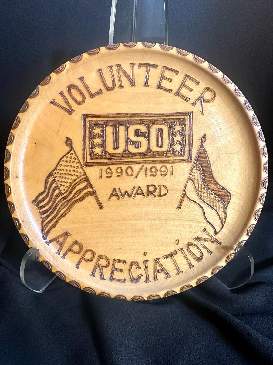 Dated 1990/1991, Volunteer Appreciation Award from the American USO in Germany.