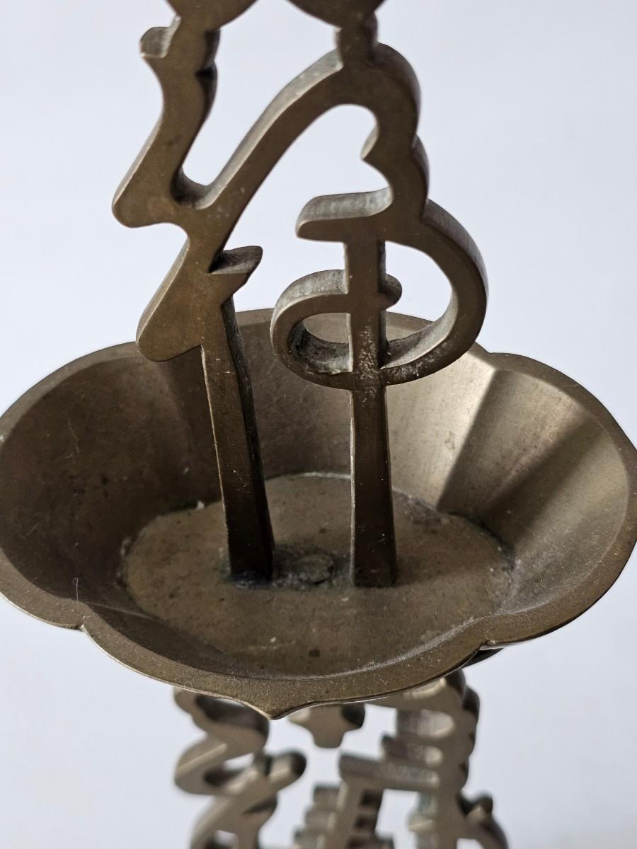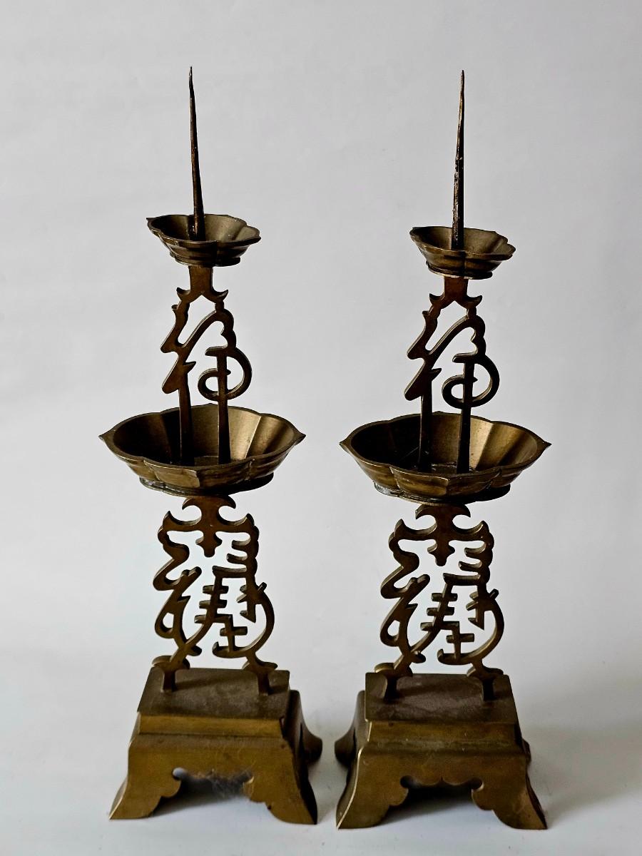 heavy brass candlesticks with asian characters in them, see photos for details. Heavy to ship.