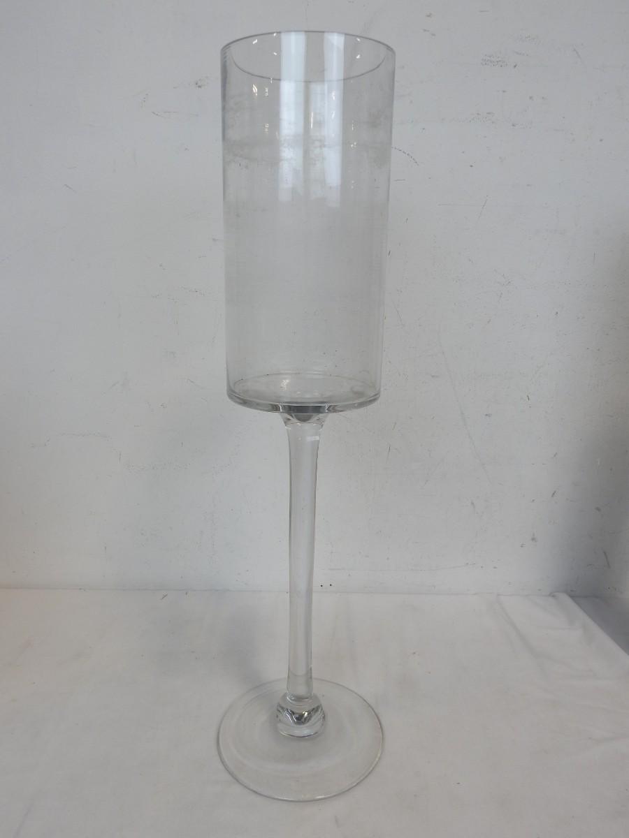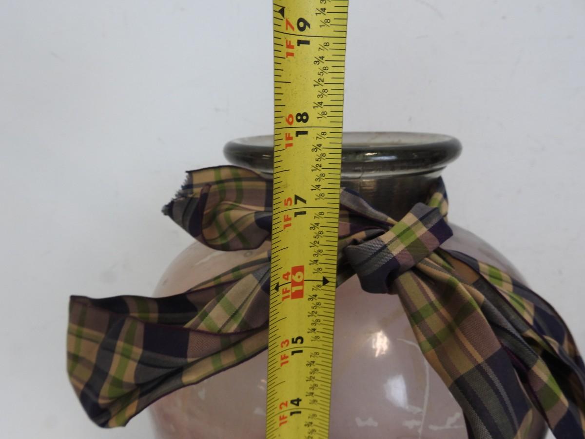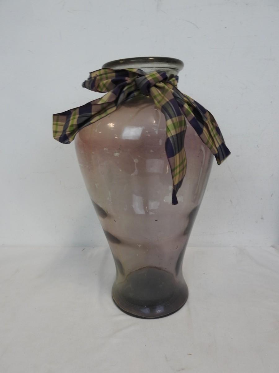 Very Tall Glass Vases: Clear: 24in, Purple: 21 3/4in, Clear w/Bow: 17 3/4in