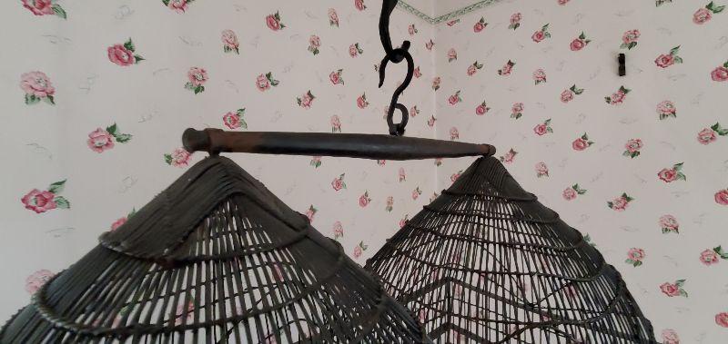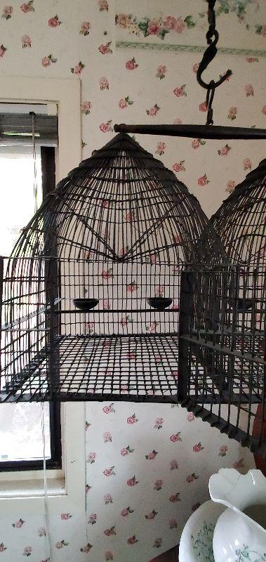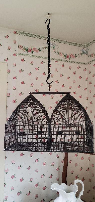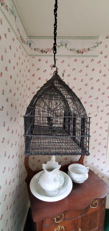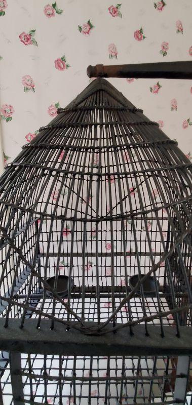 Incredible detail and work went into this cage, everything is metal, including the food and water bowls. Very rare to see one of these, and especially in such good condition. Great for an office, home decor, Airbnb, gift shop etc. It measures 25" x 13" x 19" tall.