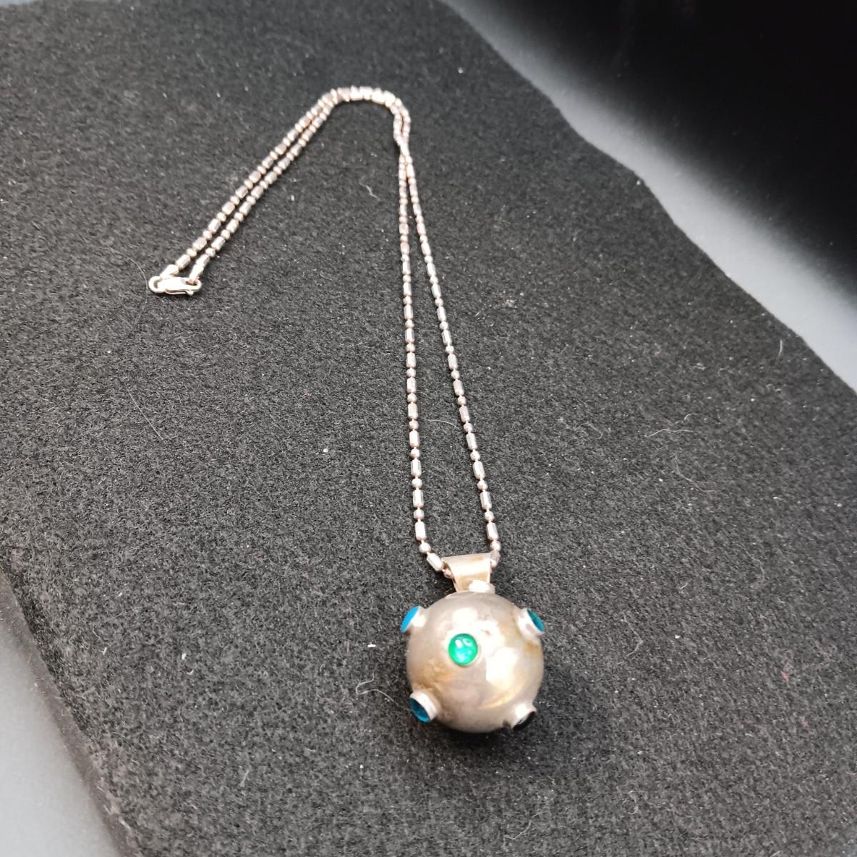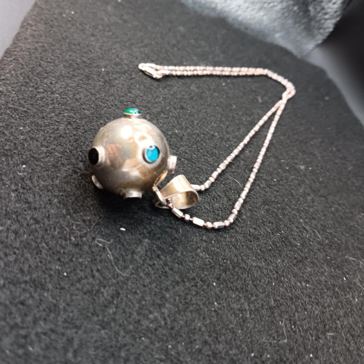 VERY UNIQUE NATIVE MADE STERLING SILVER ENCLOSED BELL ON A STERLING CHAIN