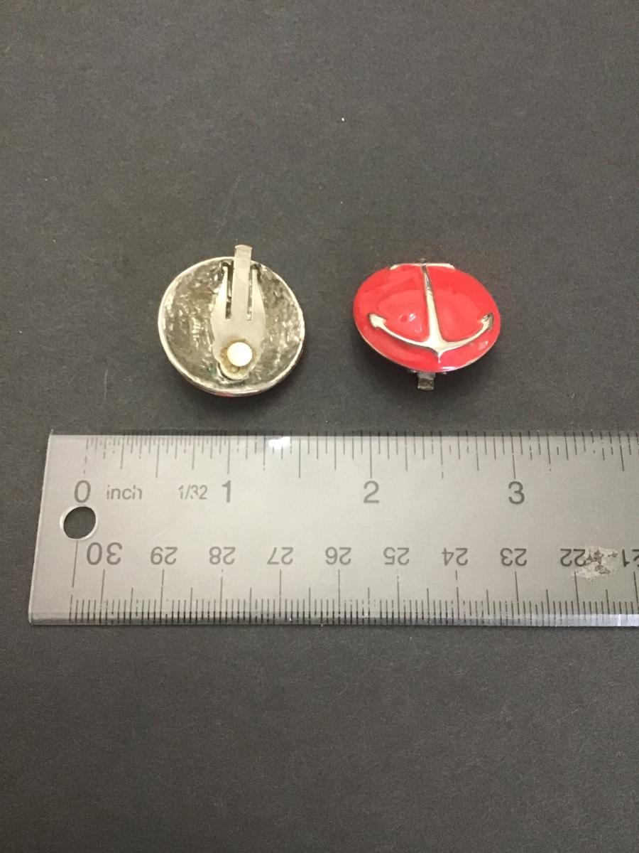Very vintage nice red enamel ship anchor, earrings. Please see attached photos.