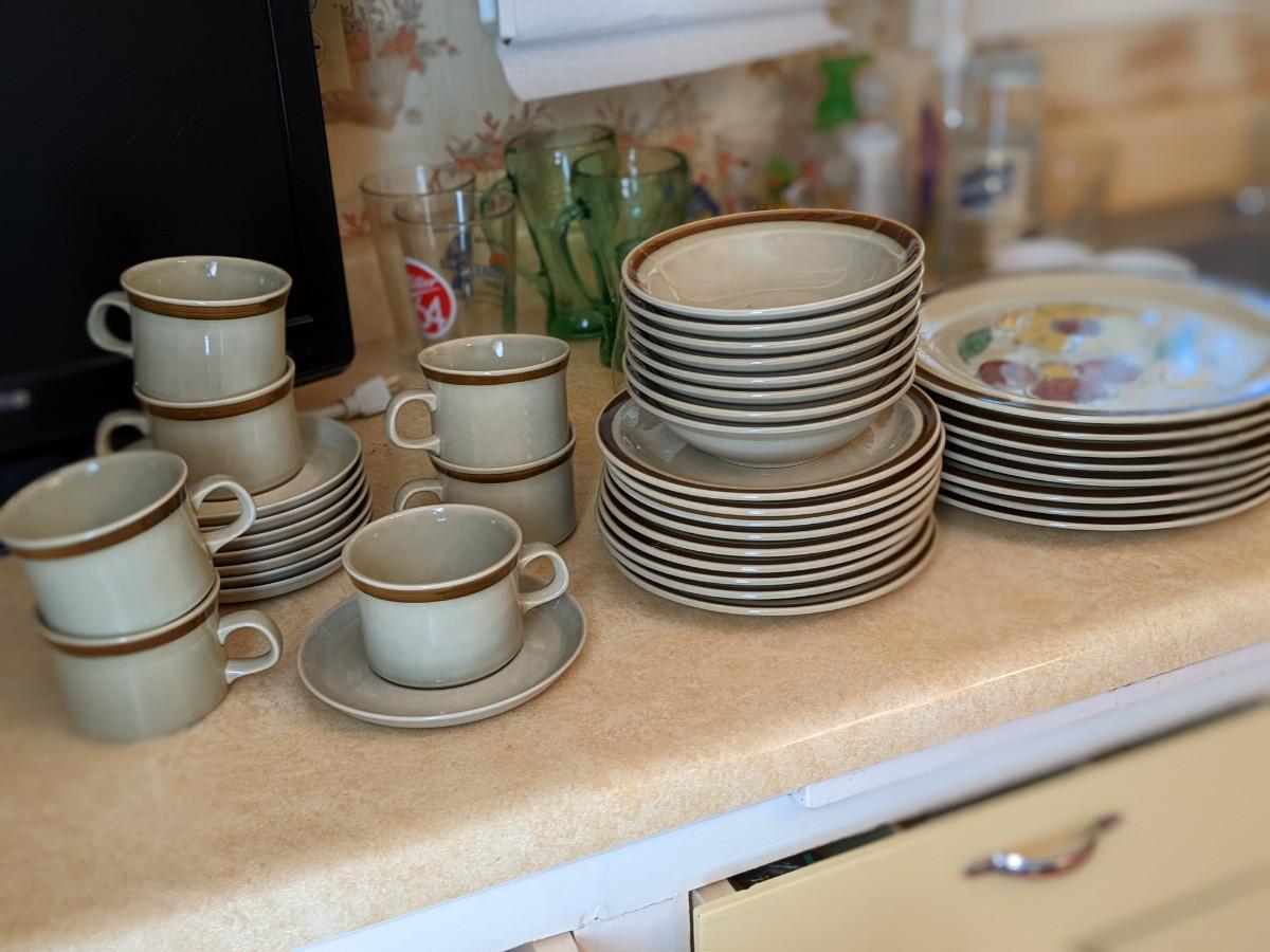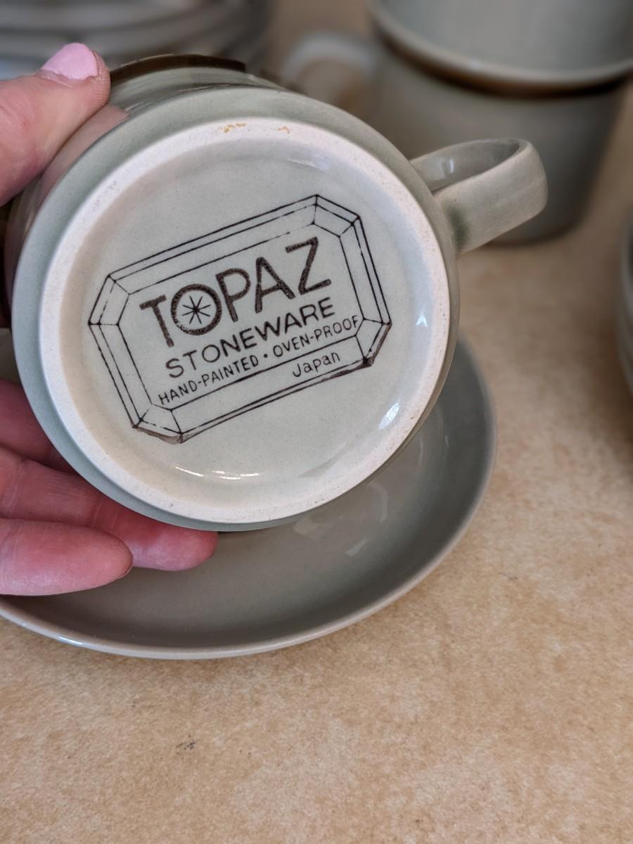 Very Vtg Topaz Hand Painted Stone Dinnerware