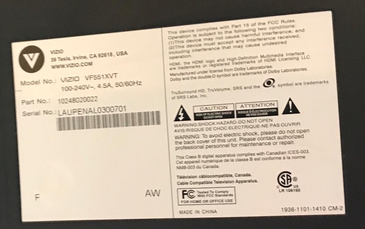 55” VIZIO LCD Television, there is no significant damage to the television and is in good useable condition. Has been tested and works perfectly, check pictures for more details. Does not come with the remote control.