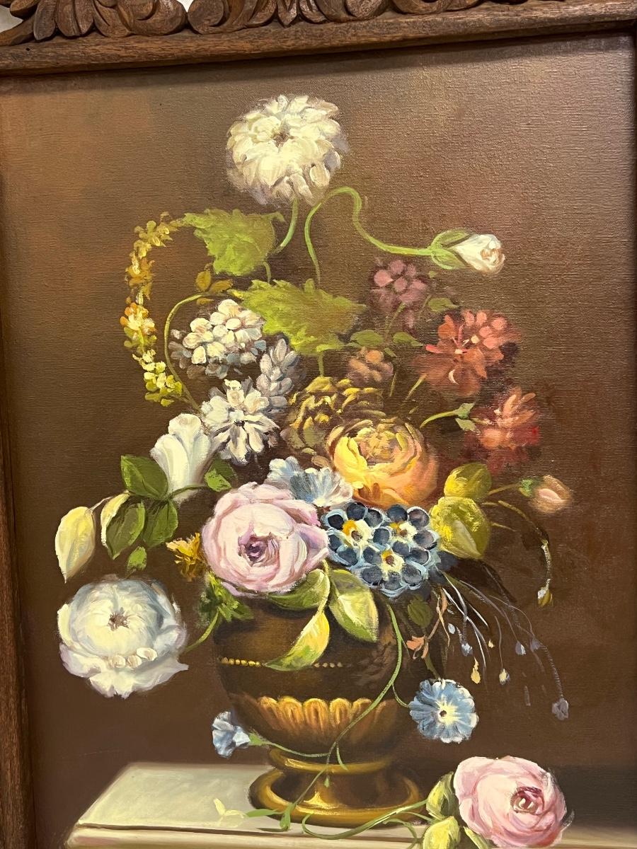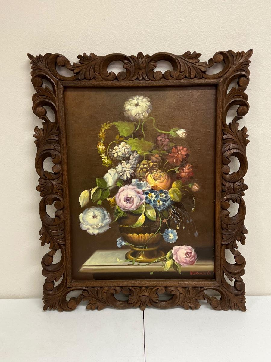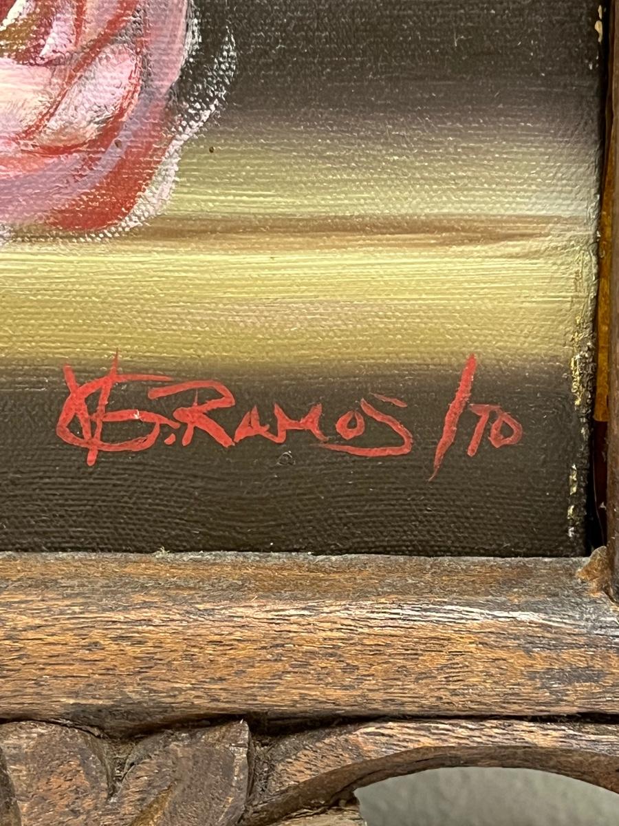 VG RAMOS ~ Original 1970 Floral Canvas Frame Painting