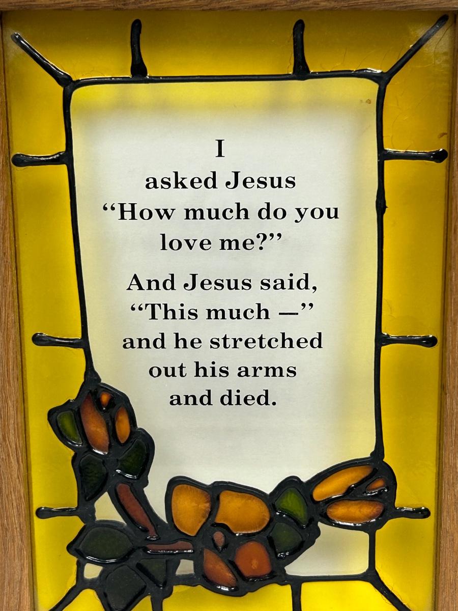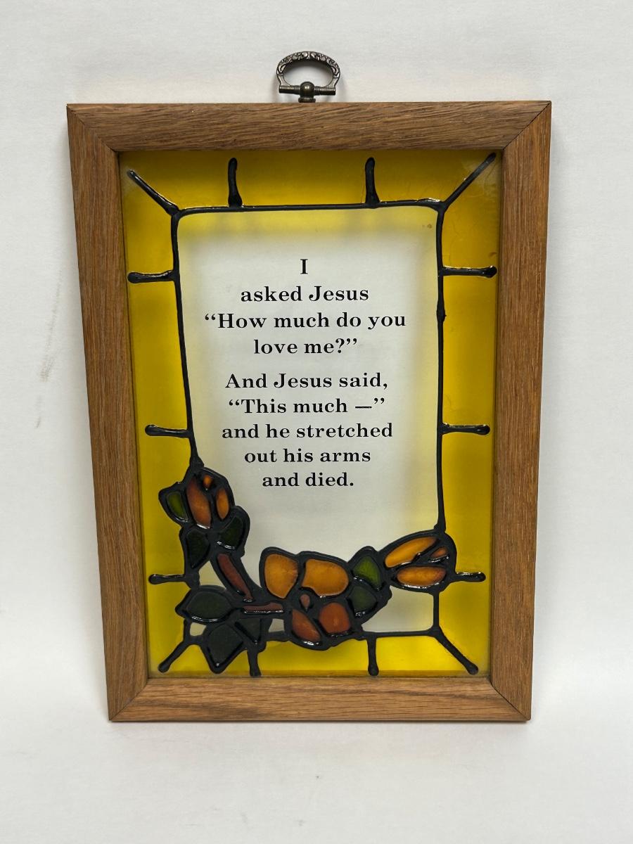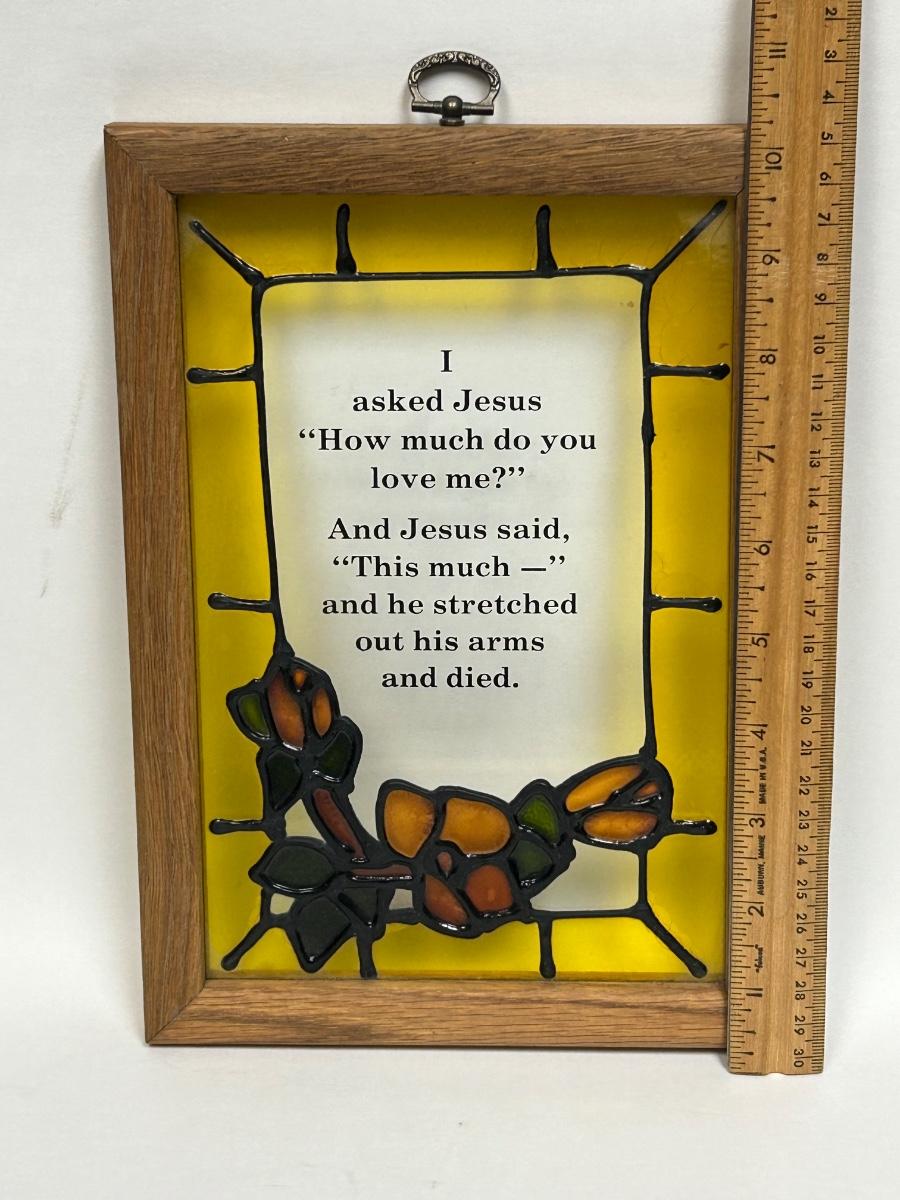Vintage Spiritual Religious Jesus Quote Framed Stained Glass Art. In good condition. About 10" size.