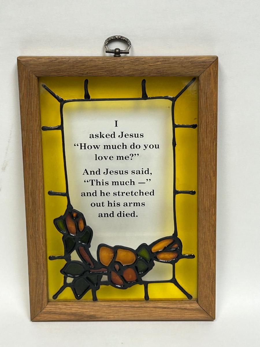 Vintage Spiritual Religious Jesus Quote Framed Stained Glass Art