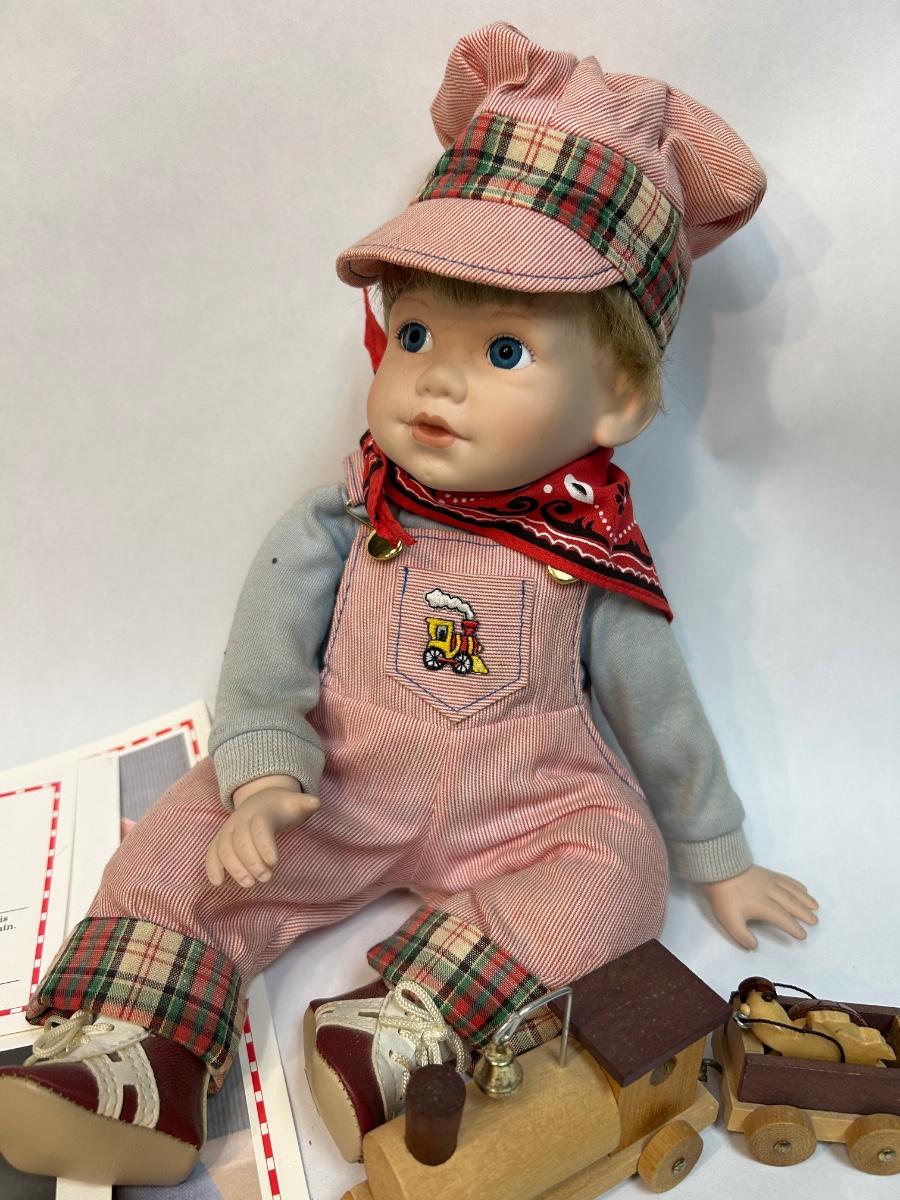 The Danbury Mint Jimmy Porcelain Doll with COA Cute Playing with Train
