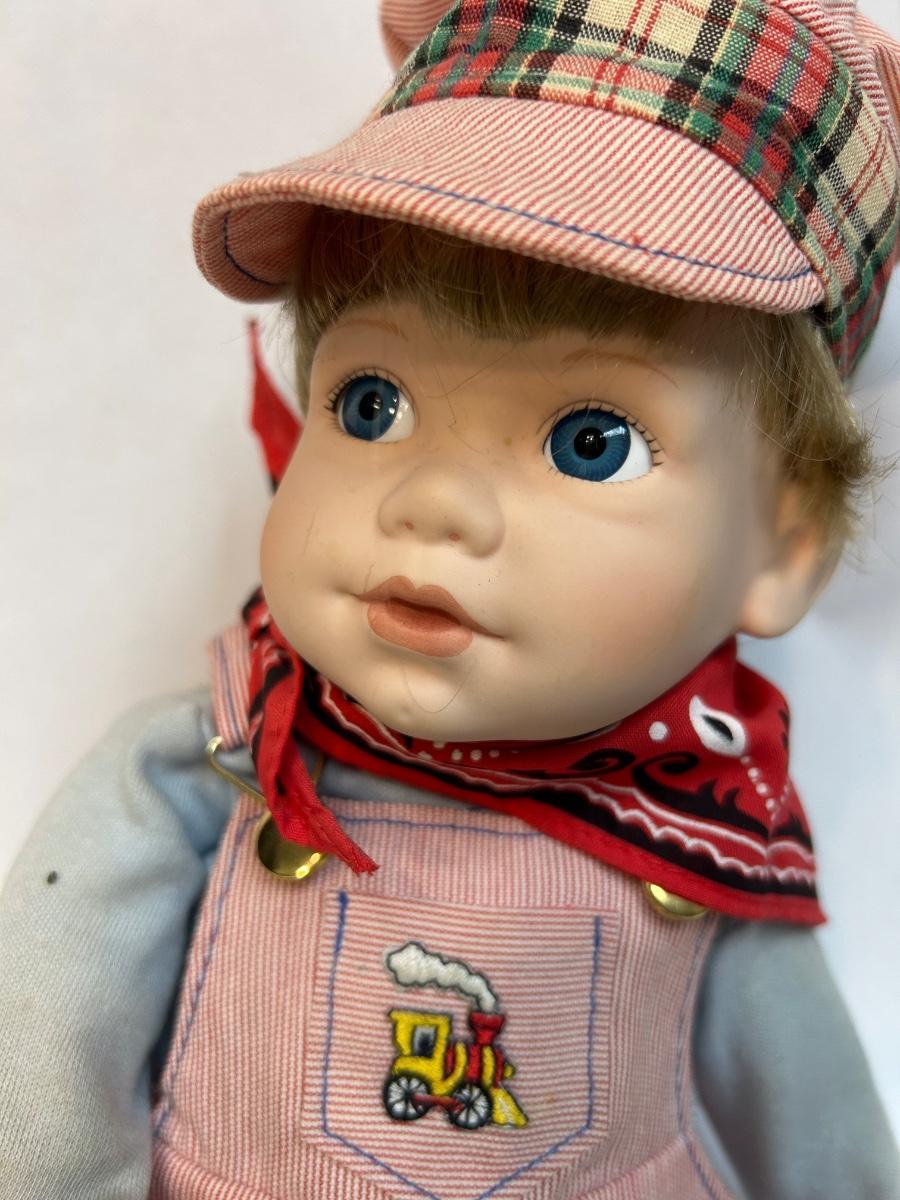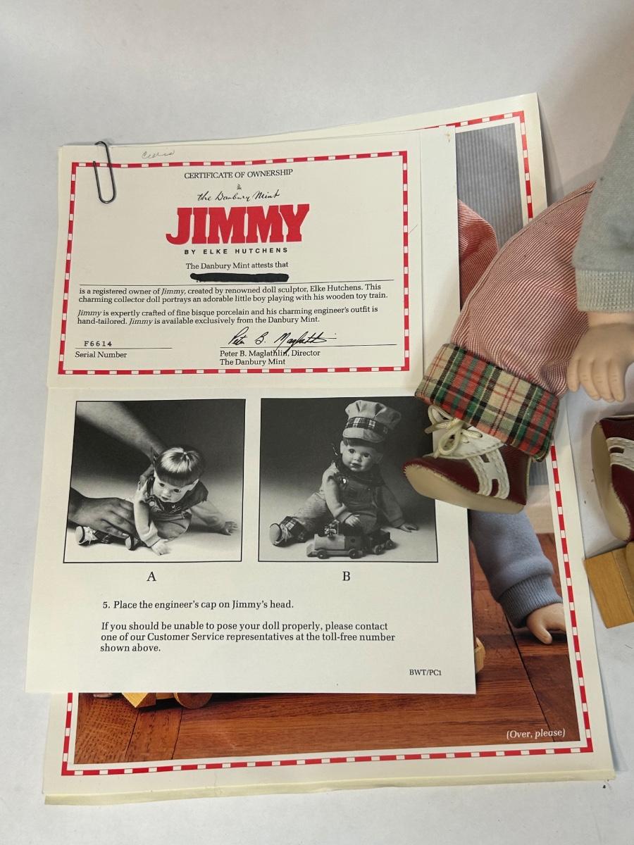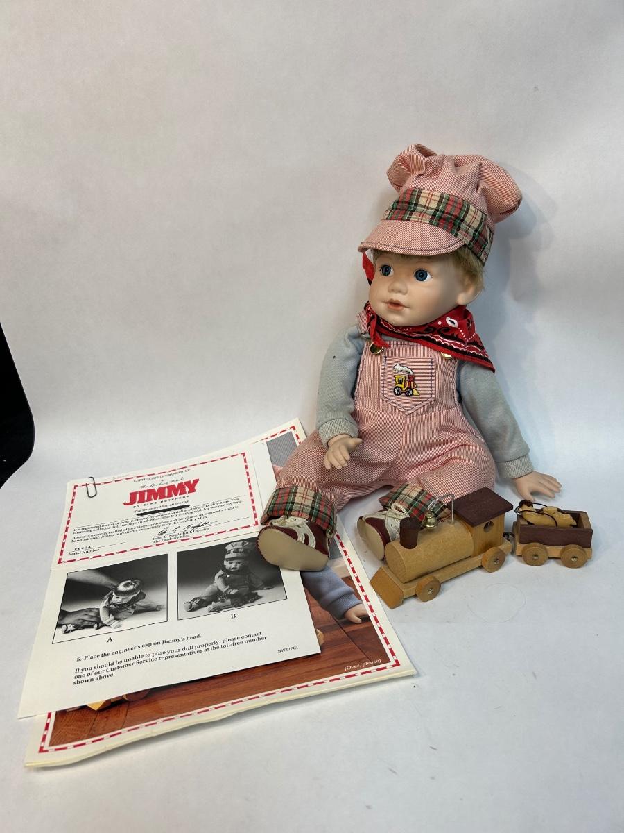 The Danbury Mint Jimmy Porcelain Doll with COA Cute Playing with Train. In good condition.