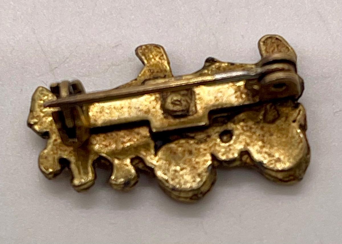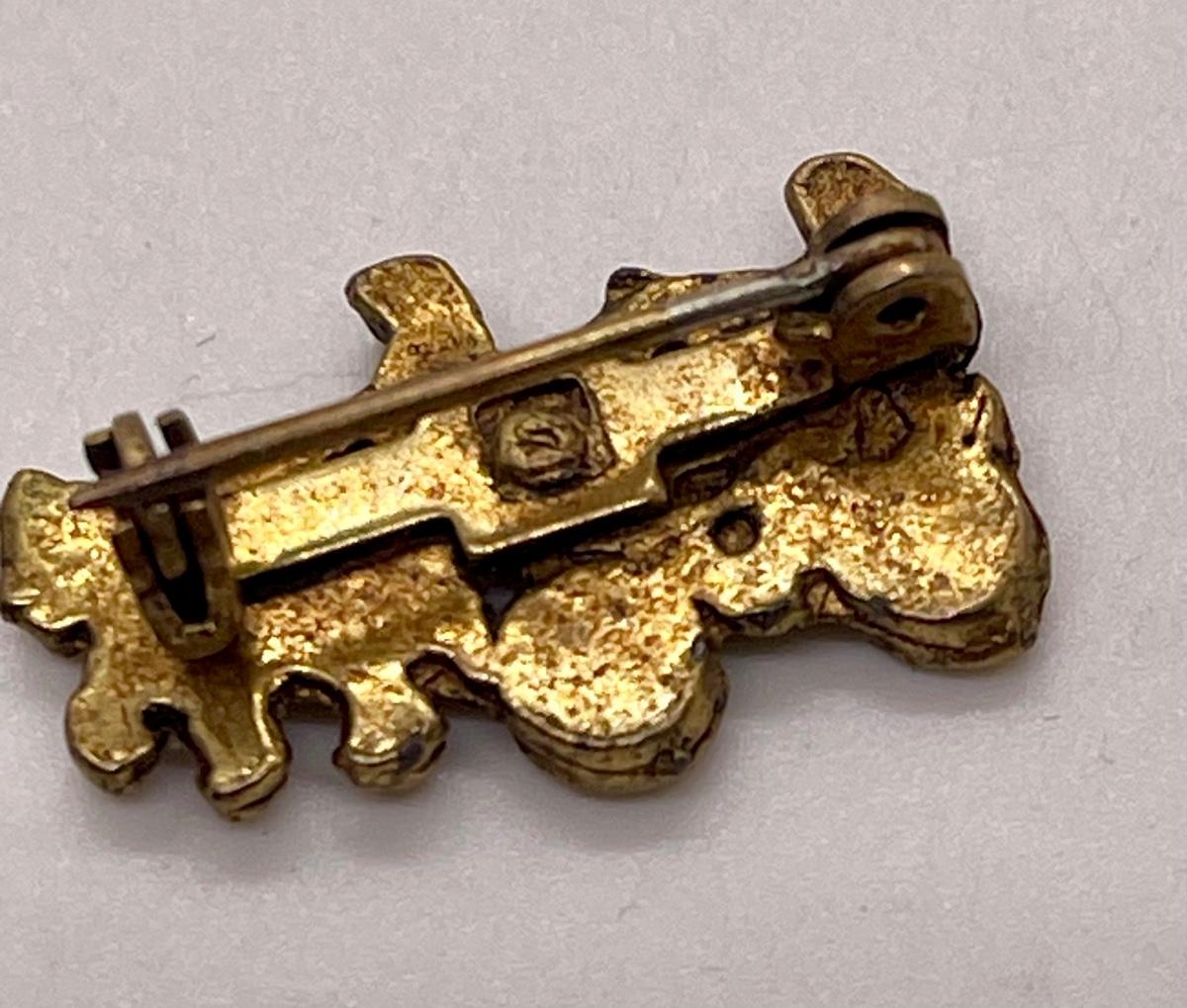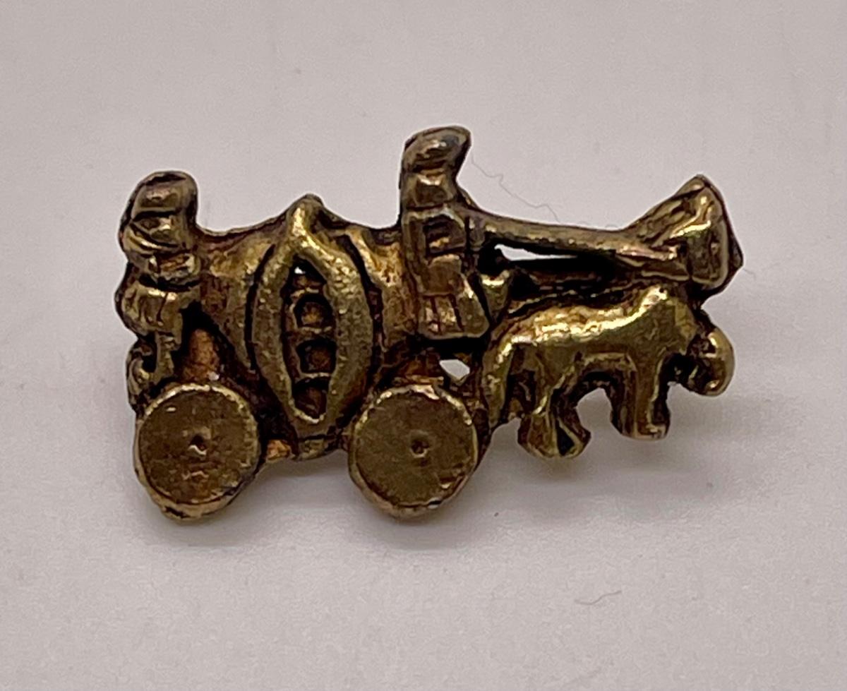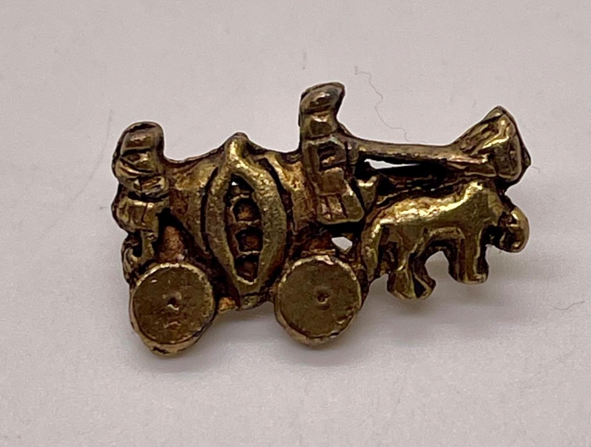 Vintage gold tone metal Pin w/Horse and Buggy scene