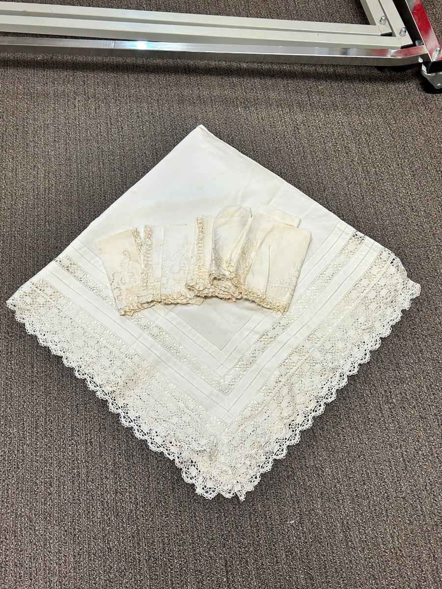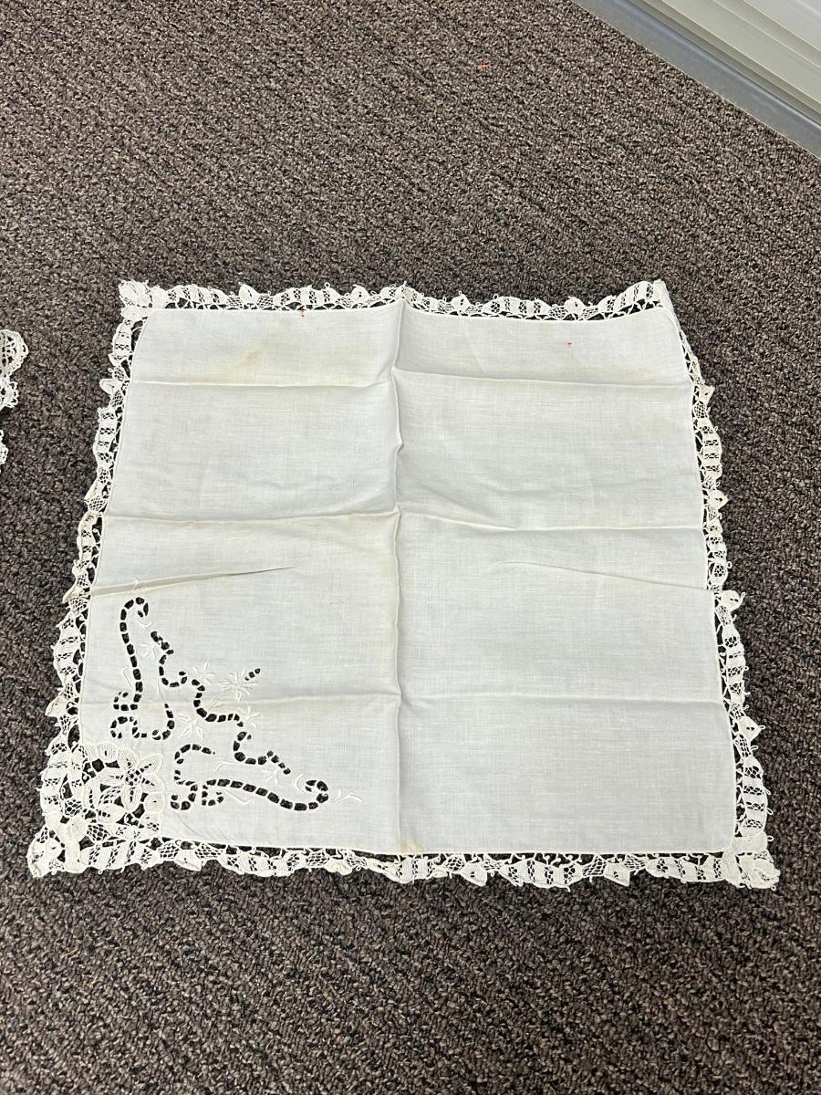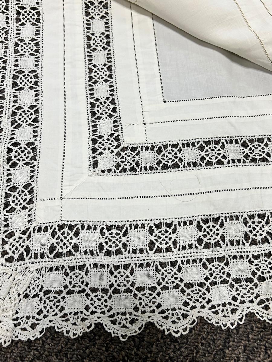 Vintage Lace Edge White Cotton Tablecloth with Dinner Napkins
