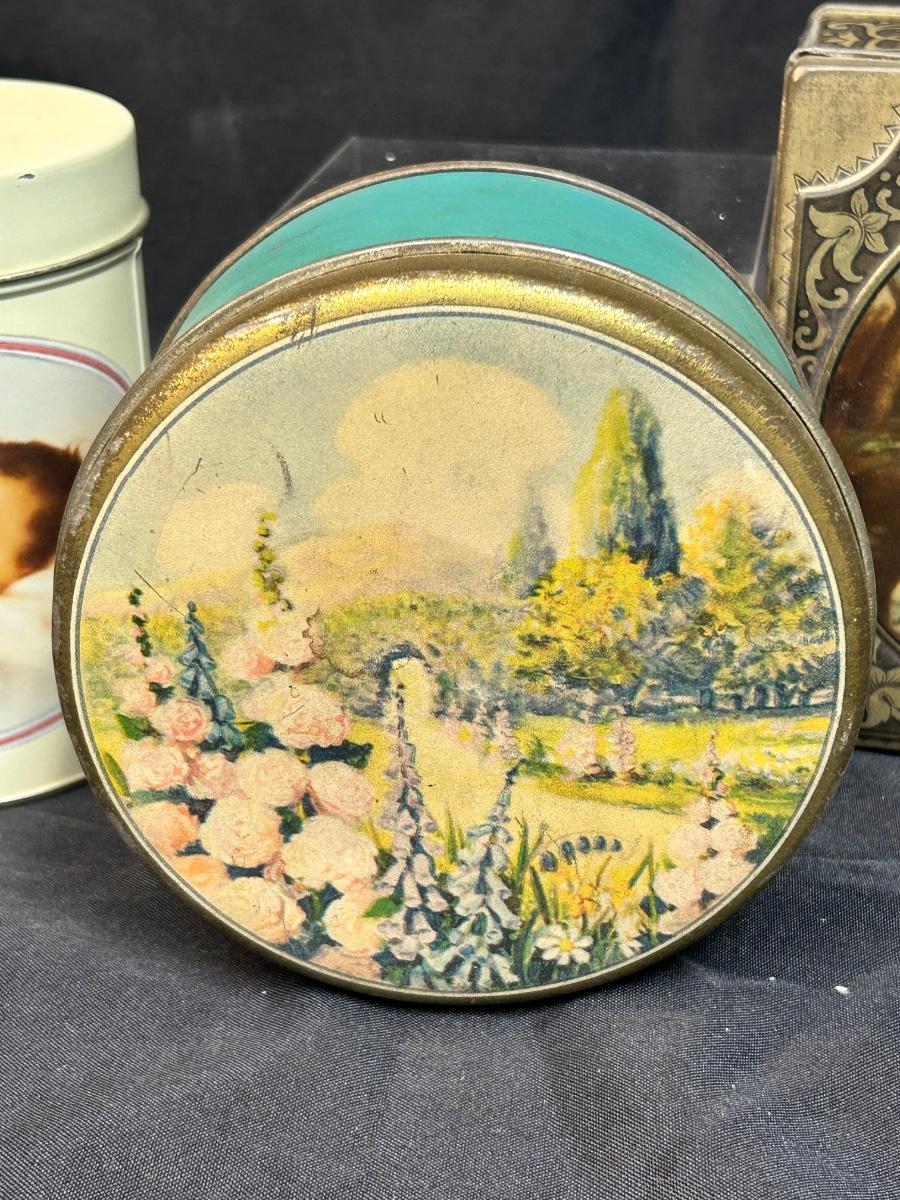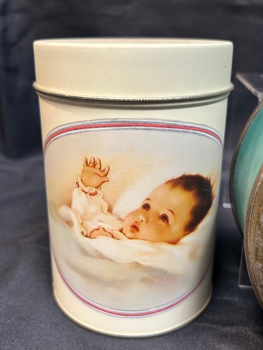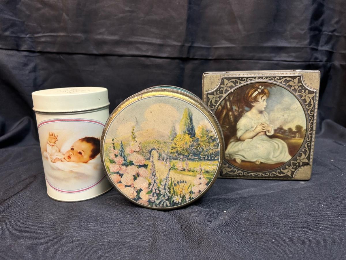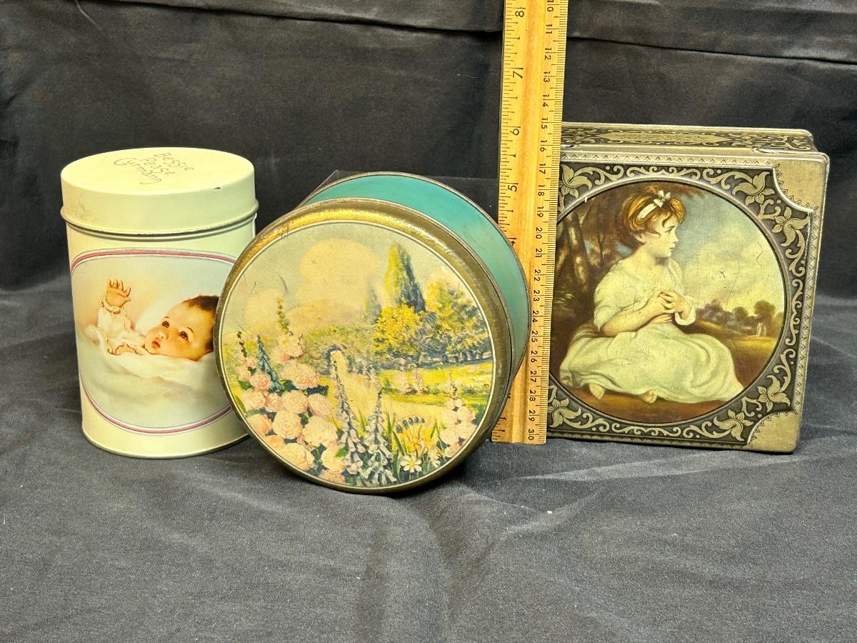 Set of Three Vintage Collector Tin Canisters Flowers & Children