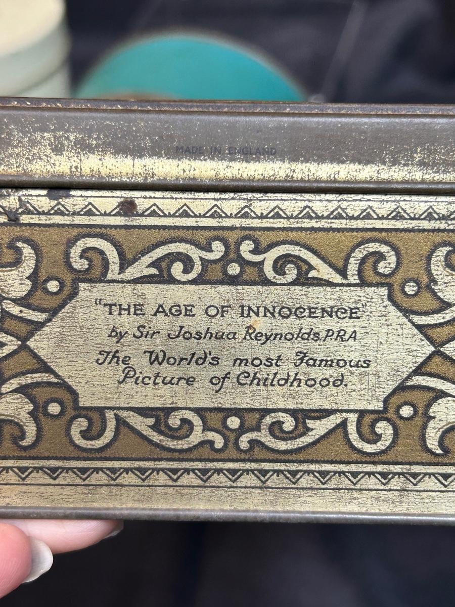 Set of Three Vintage Collector Tin Canisters Flowers & Children. In vintage condition, some wear but display well.