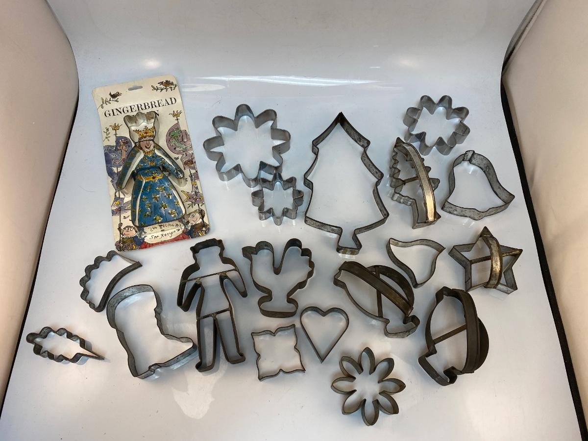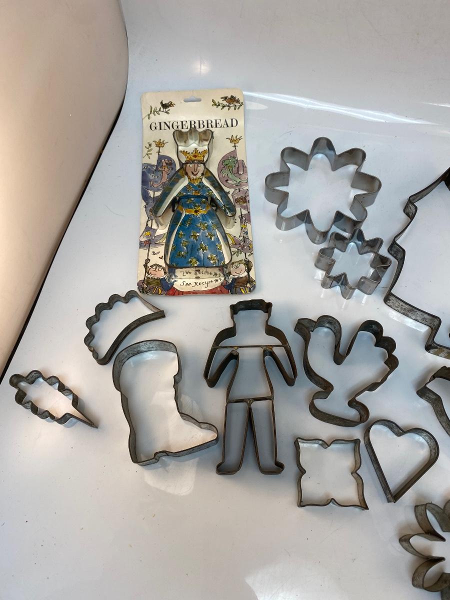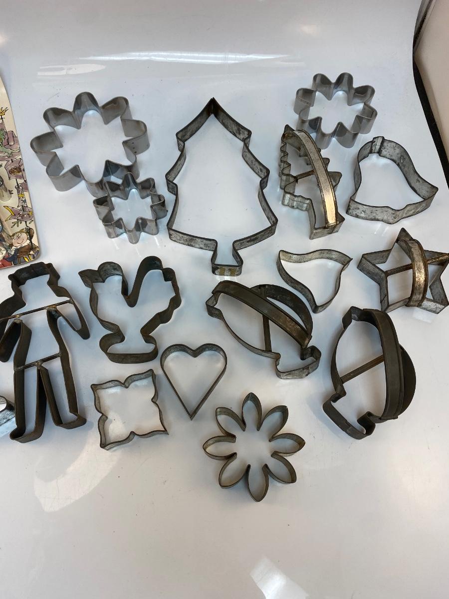 Vintage Mixed Shaped Lot of Metal Cookie Pastry Cutters. Interesting shapes in fair used condition.