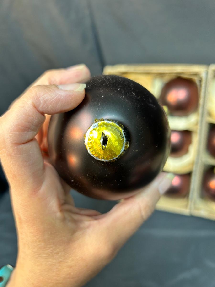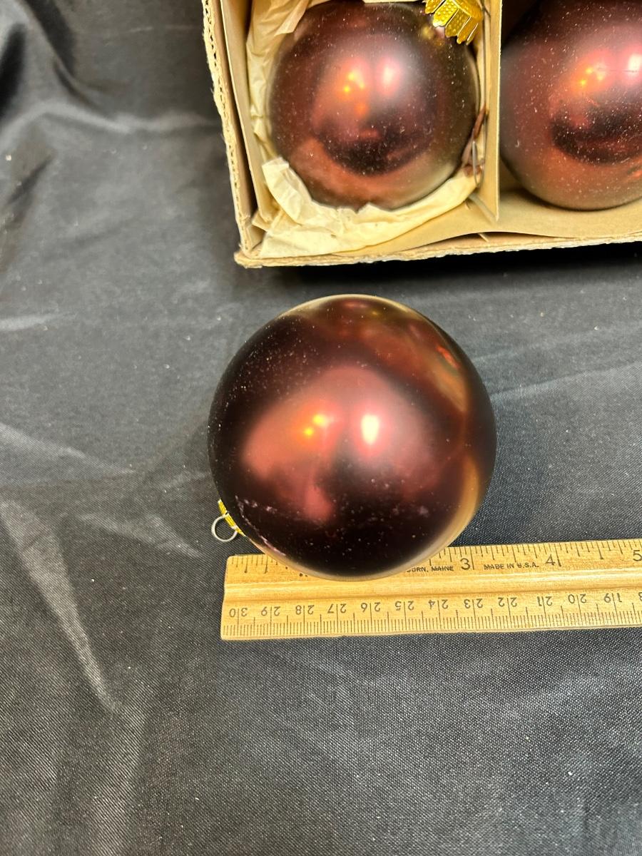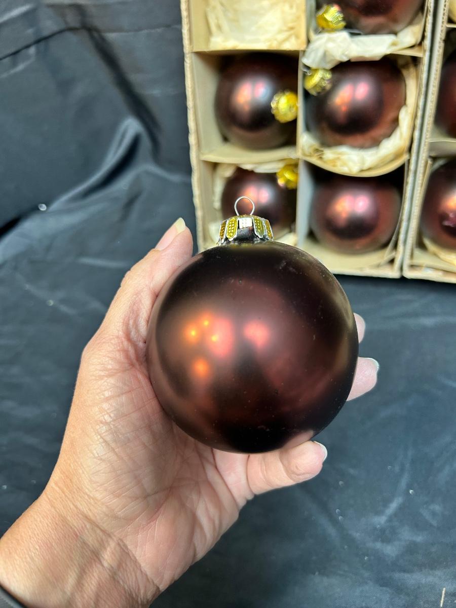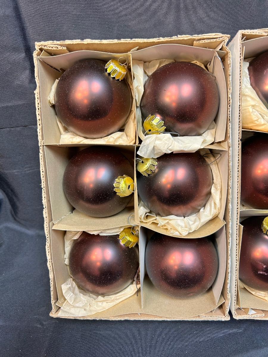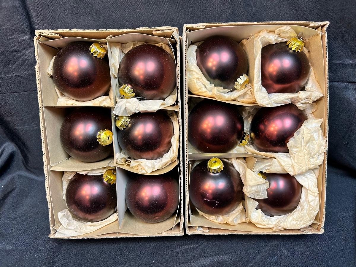 Vintage Blown Glass Burgundy Satin Christmas Holiday Tree Bulbs Balls Ornaments 3". In good condition. Two boxes of 6, 12 total.