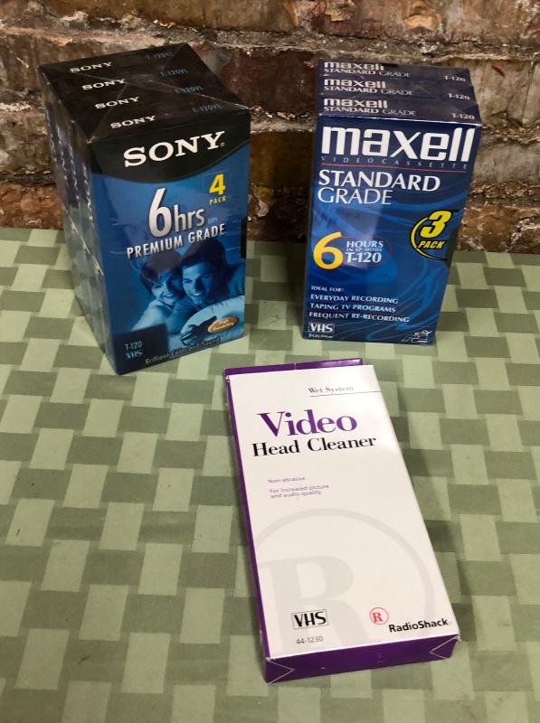 New Sony and Maxell VHS blank tapes and a Video Head Cleaner....
