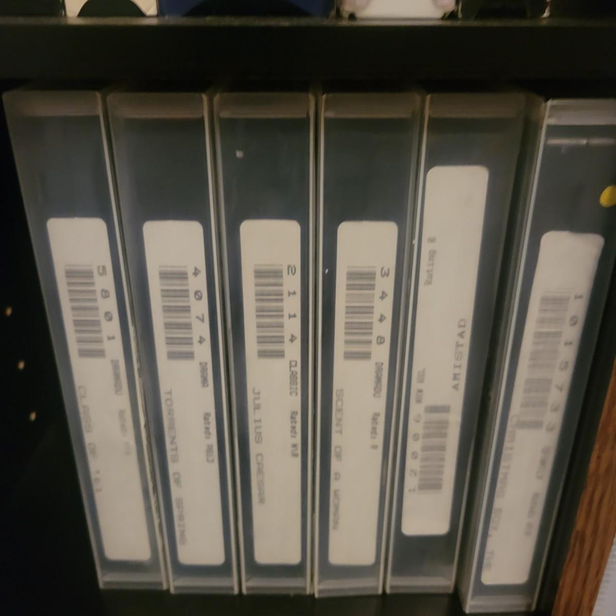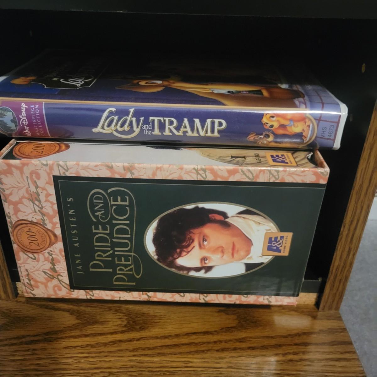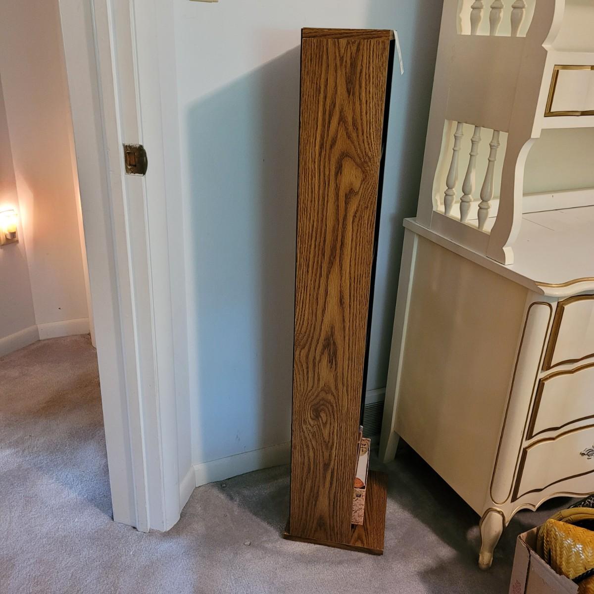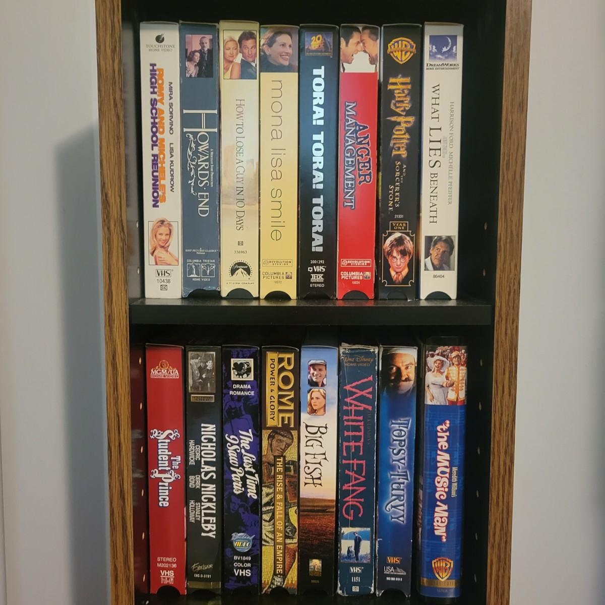 Over 30 vhs tapes and a tower to store them on in good condition. Storage tower has adjustable shelves and could be used to store other items. Tower is made of pressed wood with a paper veneer and measures approximately 11" x 9.5" x 45" Local pickup only