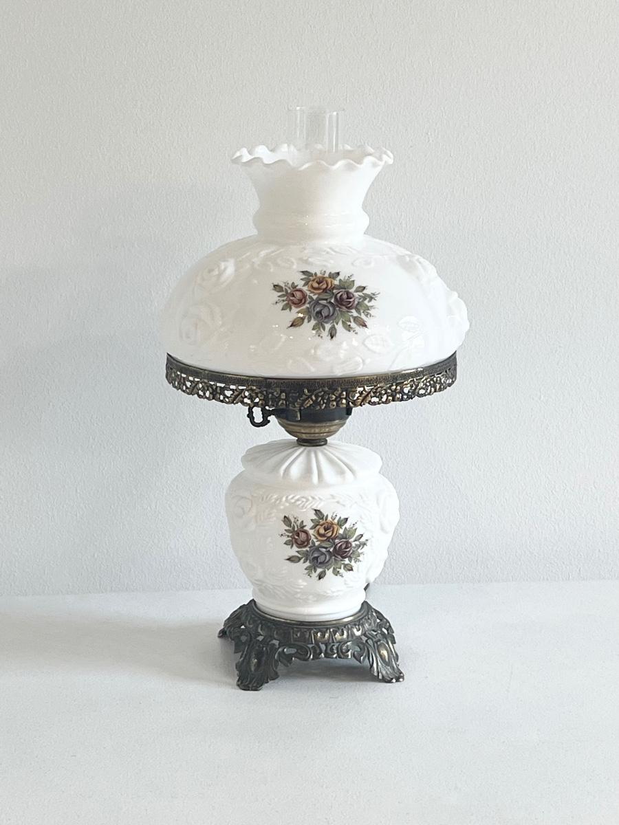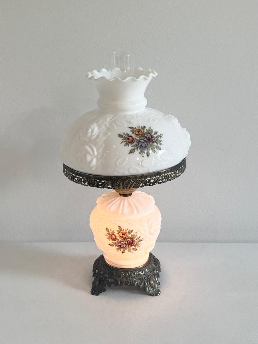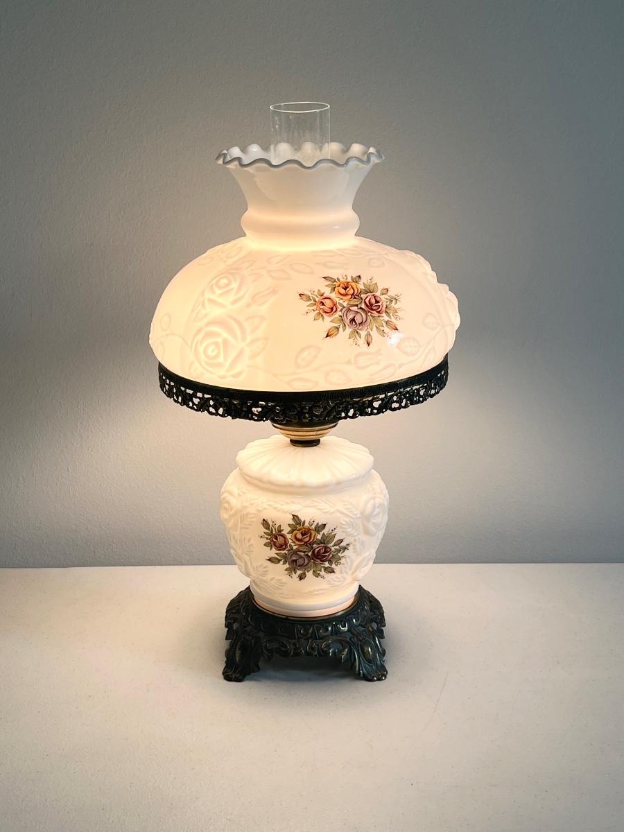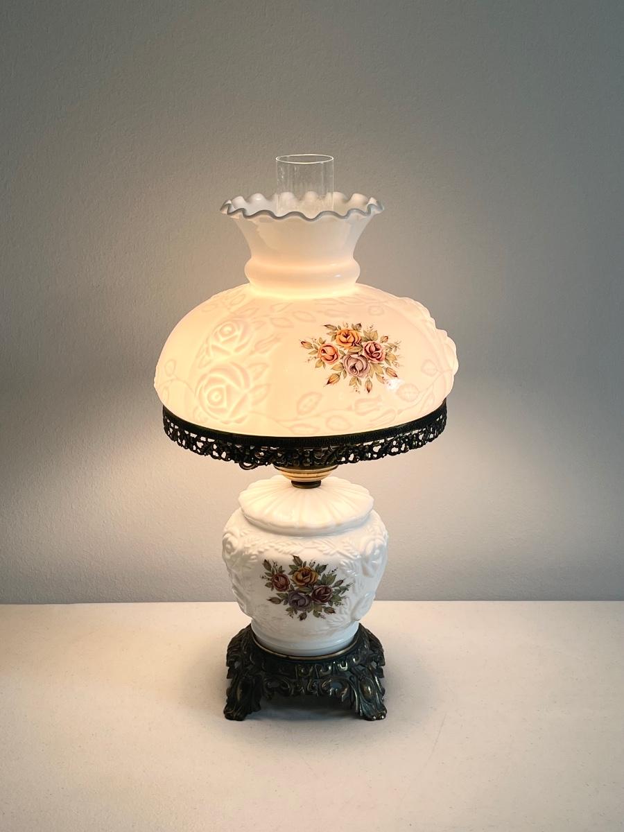 Milk Glass Hurricane 3-Way Lamp