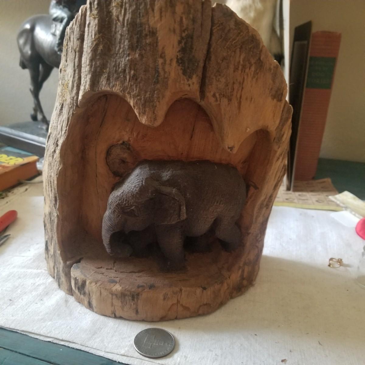 Vintage carved Eleojane in releif of 10 x 8 wood chunk Wll rendered